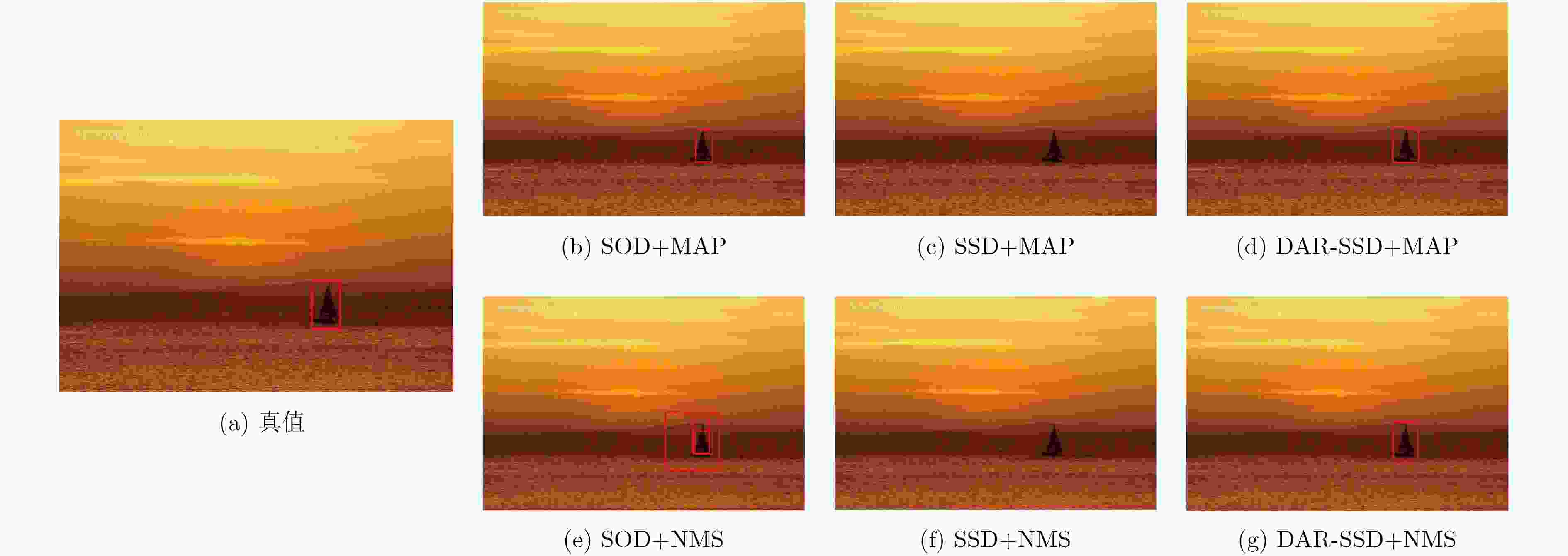 AP-small MSO ECSSD DUT-OMRON HKU-IS SSD+NMS 0.7984 0.7719 0.5734 0.7886 DAR-SSD+NMS 0.8288 0.7951 0.5980 0.8142 SSD+MAP 0.8044 0.7877 0.5786 0.8056 DAR-SSD+MAP 0.8310 0.8067 0.5948 0.8128 表 6 小尺度显著性目标情形下AP对照