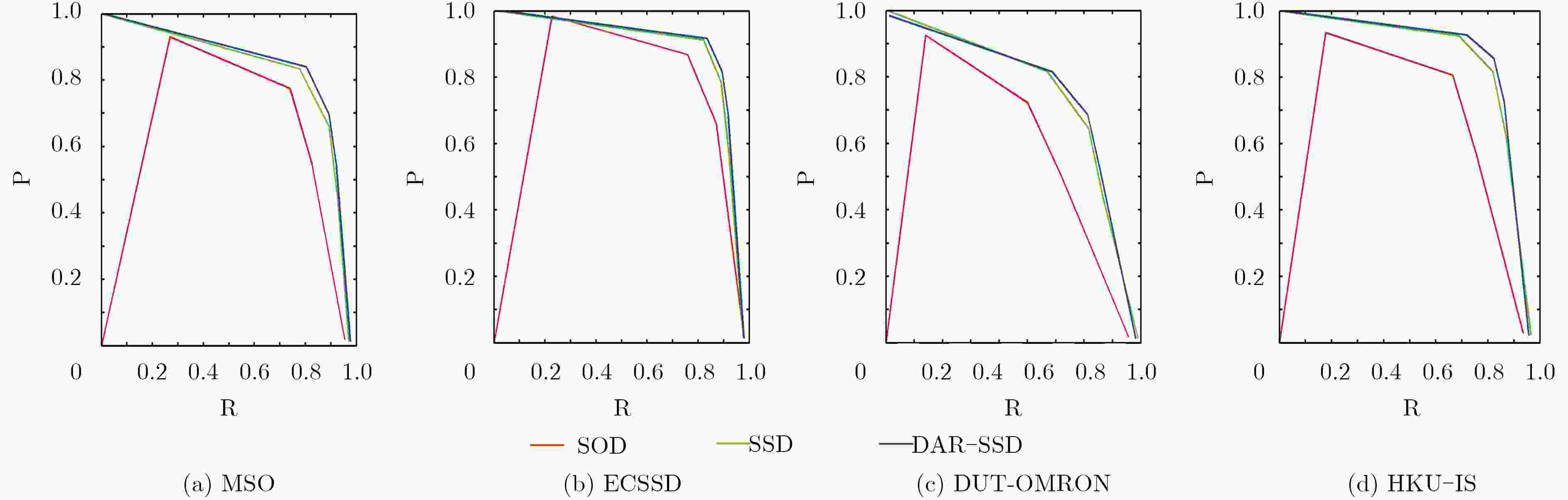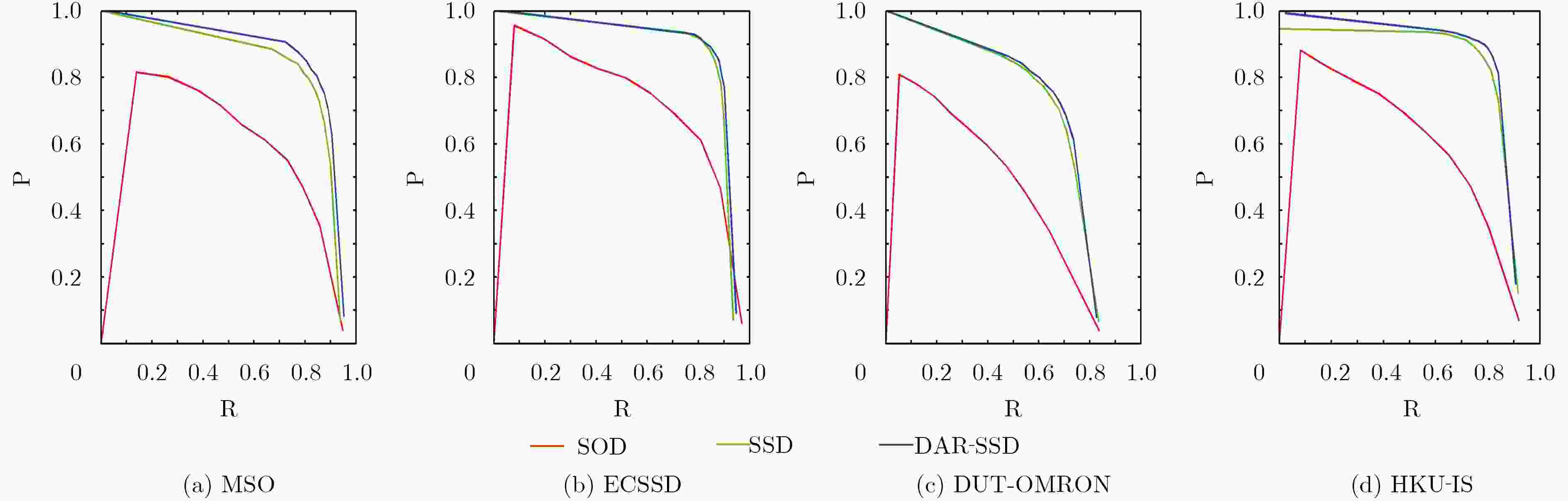 AP-MAP MSO ECSSD DUT-OMRON HKU-IS 平均 SOD 0.7338 0.8152 0.5476 0.6938 0.6976 SSD 0.8229 0.8645 0.6698 0.8164 0.7934 DAR-SSD 0.8361 0.8766 0.6774 0.8317 0.8054 表 2 MAP方法下AP对照
