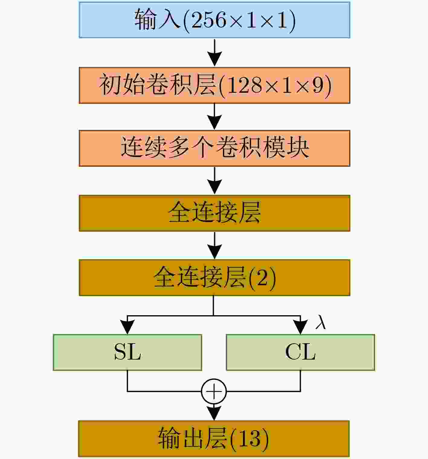 模型名称 识别时间(μs) 信噪比(dB) 0 5 10 15 模型A 258 60.42 89.41 98.21 99.83 模型B 326 72.95 94.41 99.15 99.89 模型C 323 73.78 93.71 99.07 99.86 表 2 不同复杂度模型在不同信噪比数据集下的识别准确率(%)