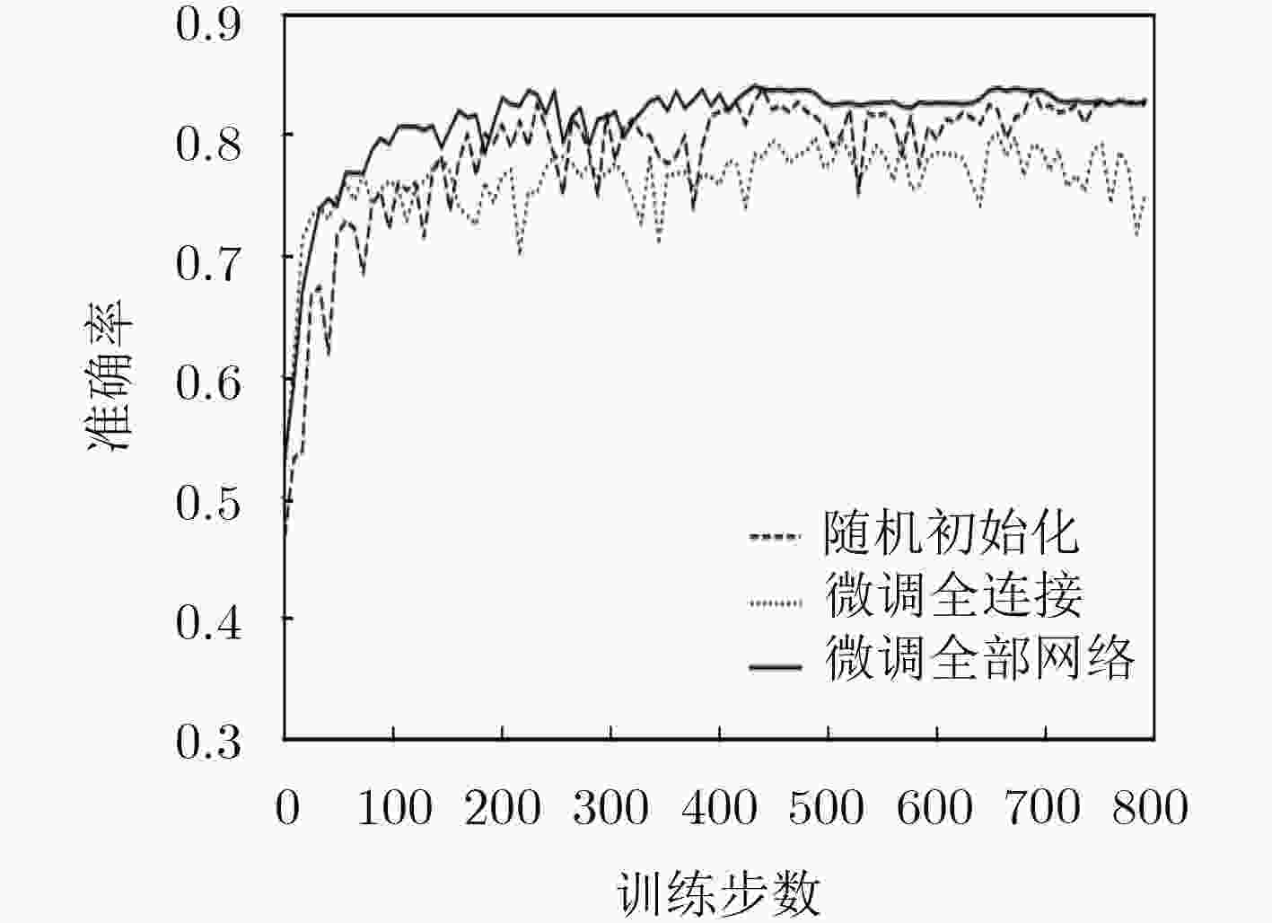 图 7 微调网络和随机初始化网络的训练过程