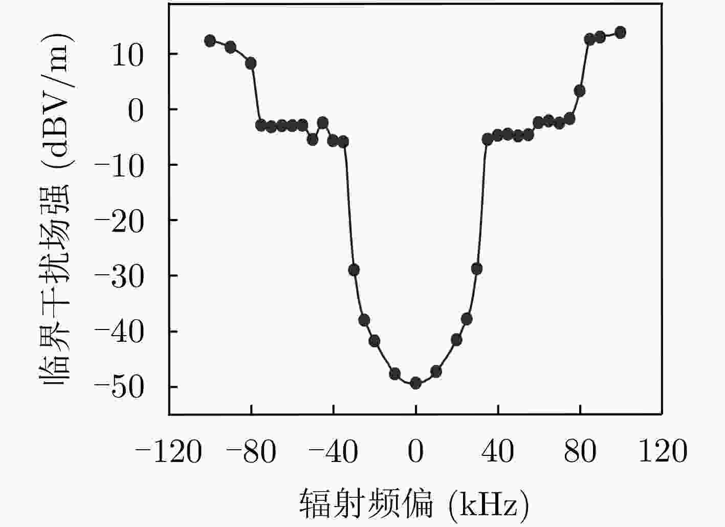 图 2 受试通信电台单频阻塞临界干扰场强