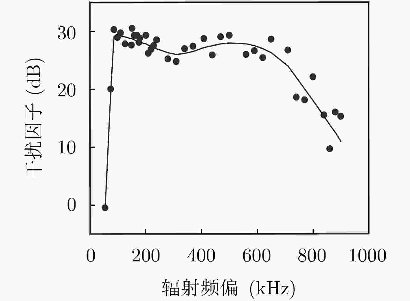 图 6 受试通信电台2阶互调低频阻塞干扰因子随辐射频偏的变化