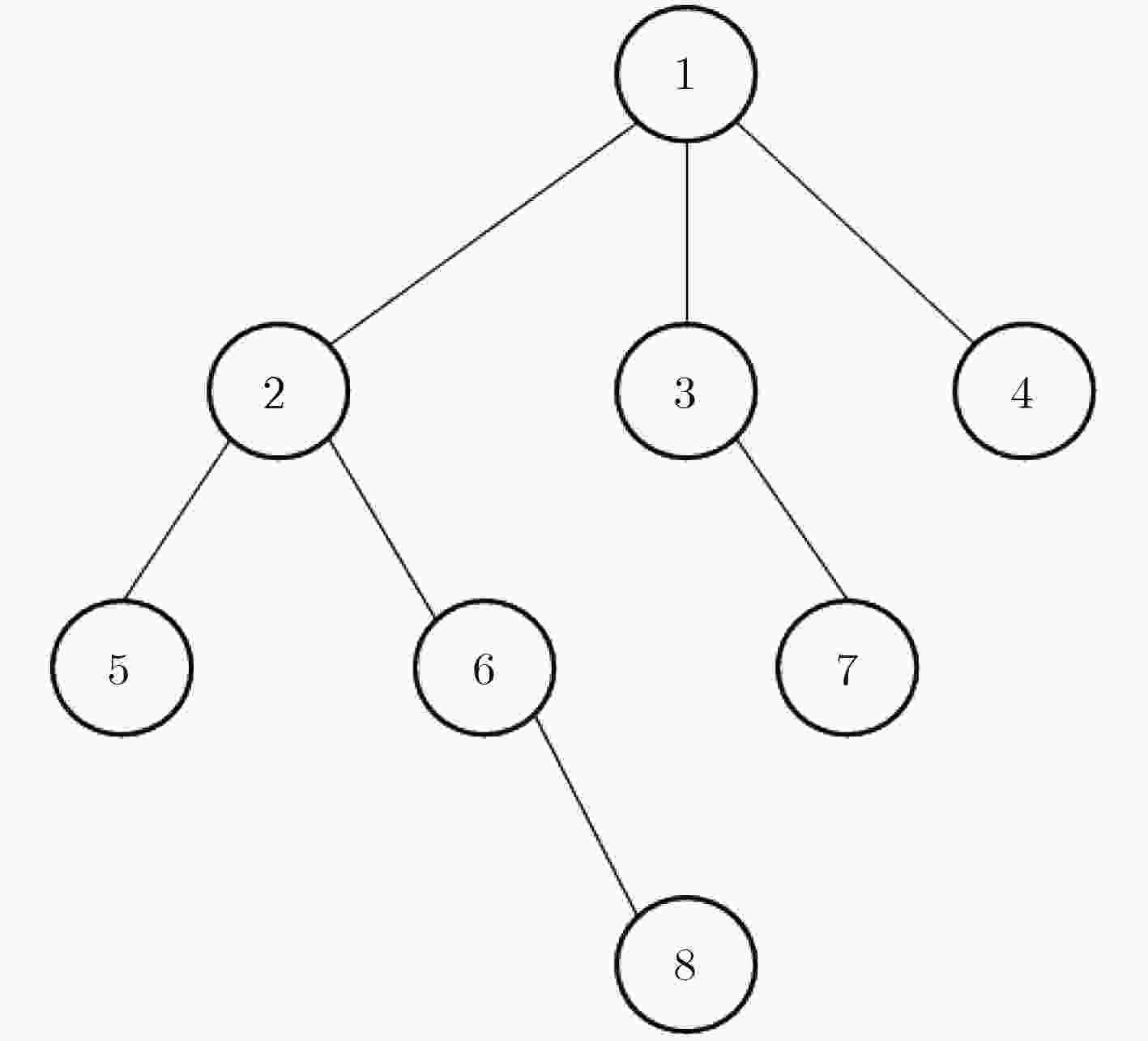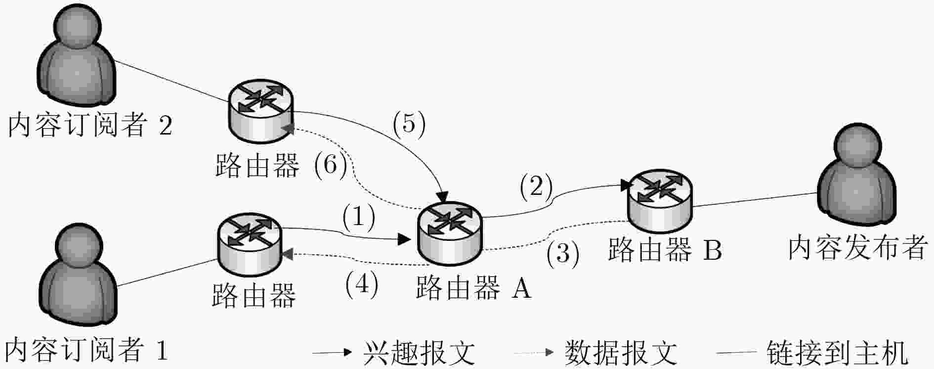 第1部分:依据拓扑信息为节点分配缓存 节点计算路由表信息时: for all ${v_i} \in V$\; do for all ${v_j} \in V$\; do 计算最短路径树得到 $p(i,j)$ and $d(i,j)$ for all ${p_j} \in p(i,j)$ do for all ${v_k}$ in ${p_j}$ do $w(i,k)$+=1 for all ${v_j} \in V$\; do 计算 $w(i,j) \cdot d(i,j)$ 降序 $w(i,j) \cdot d(i,j)$ while $\sum\limits_{{v_j} \in V} {{c_i}{x_{j,{f_i}}} \le kC} $ ${x_{j,{f_i}}}$=1 end while 第2部分:执行过程中的优化 节点收到内容 If $({x_{j,f}}=1)$ then 在[0, 1]区间生成随机数 if (num<p) then cache f 表 1 算法流程