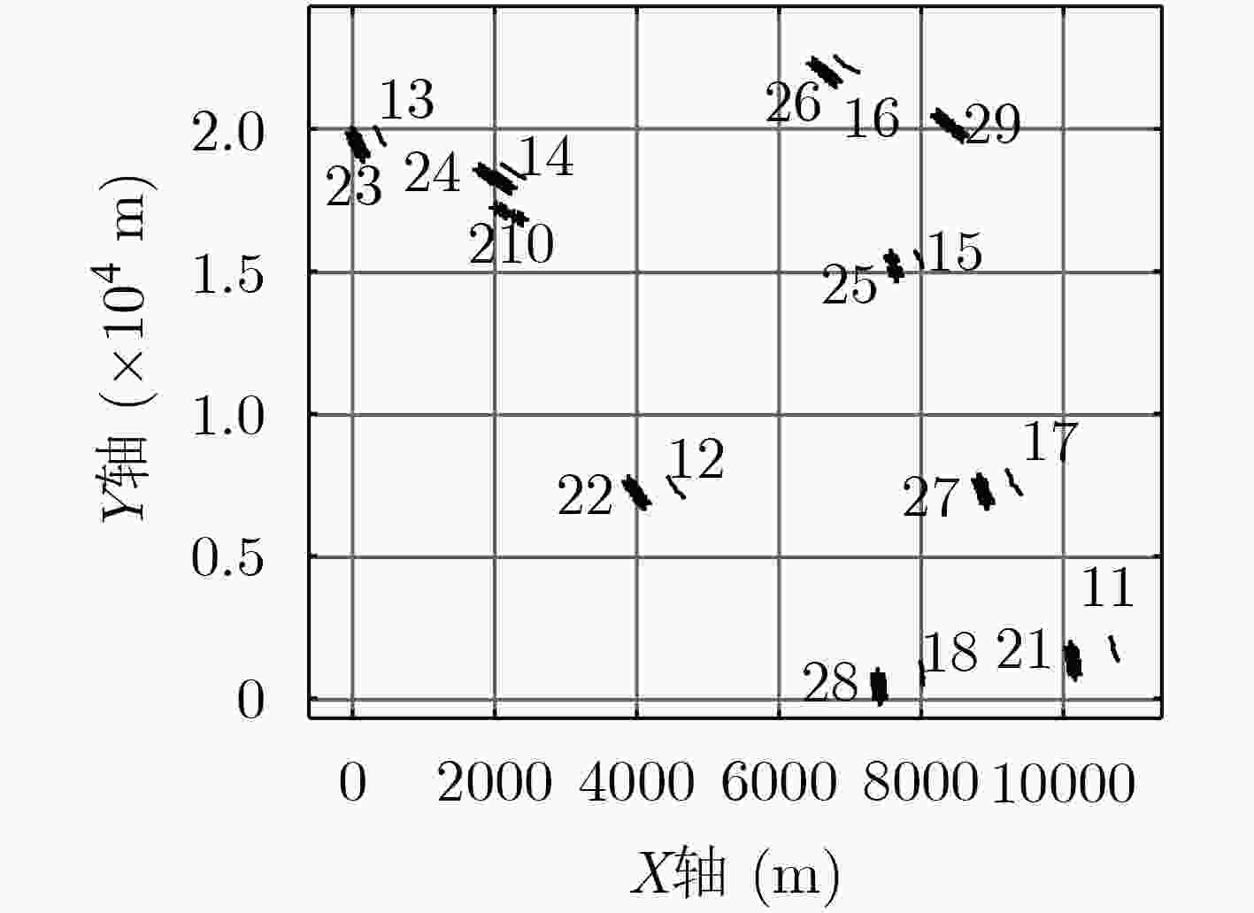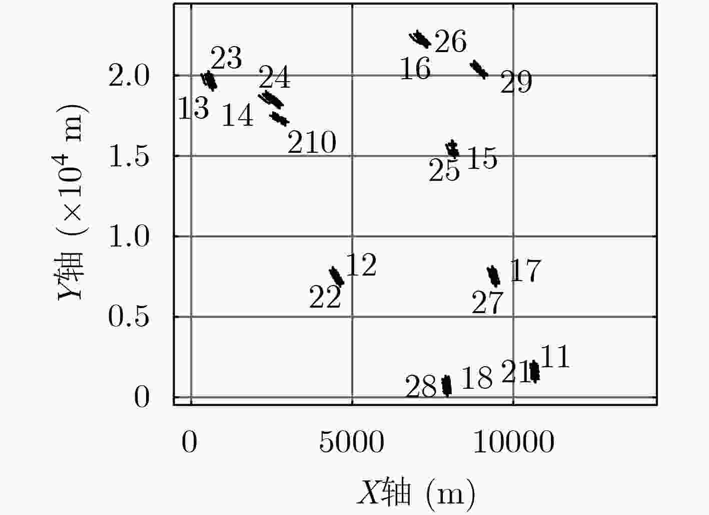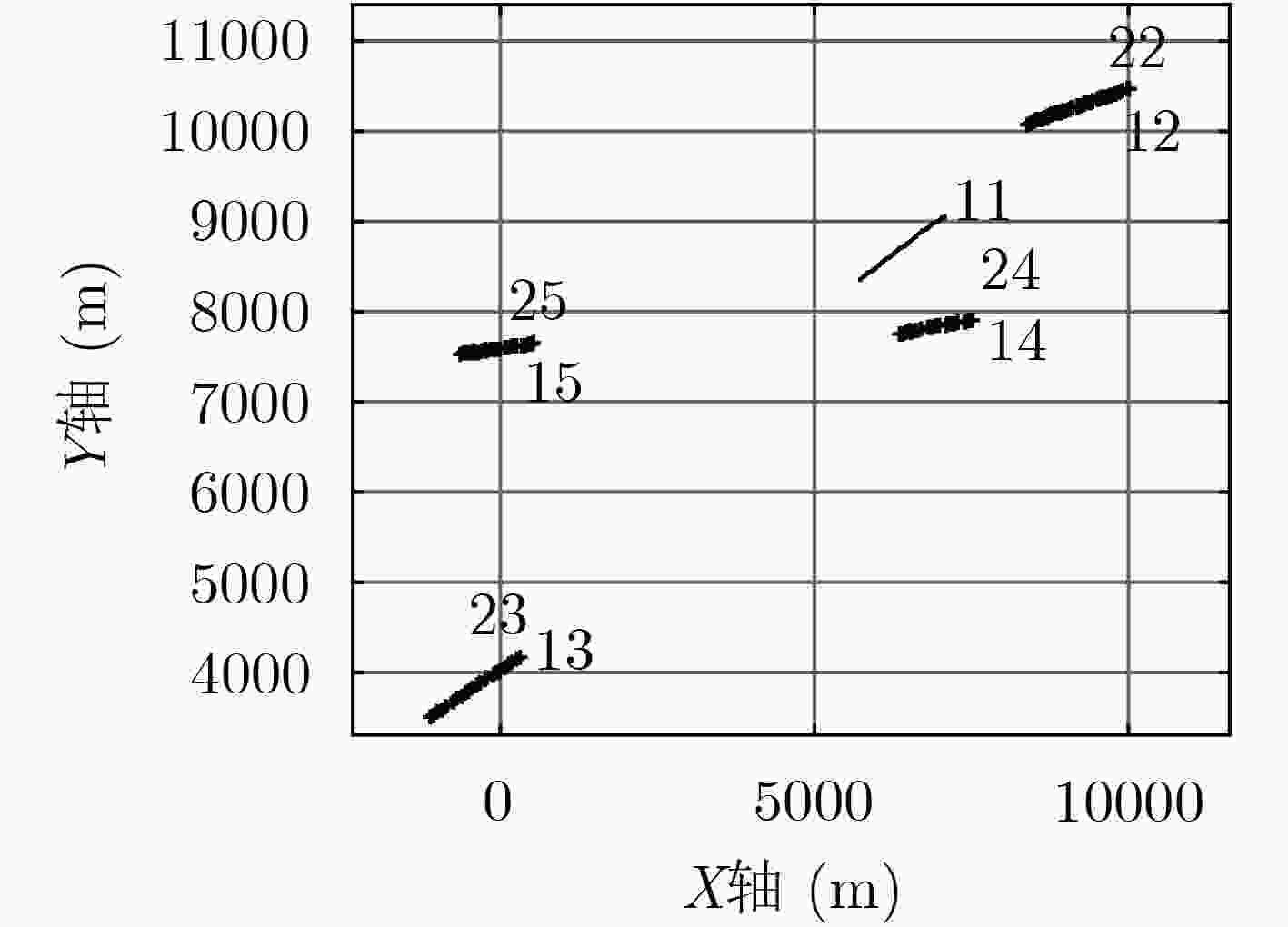 雷达1批号 11 12 雷达2批号 21 22 空间误差估计(m) 580.14 878.56 580.14 878.56 表 1 测试数据1下傅里叶算法关联结果