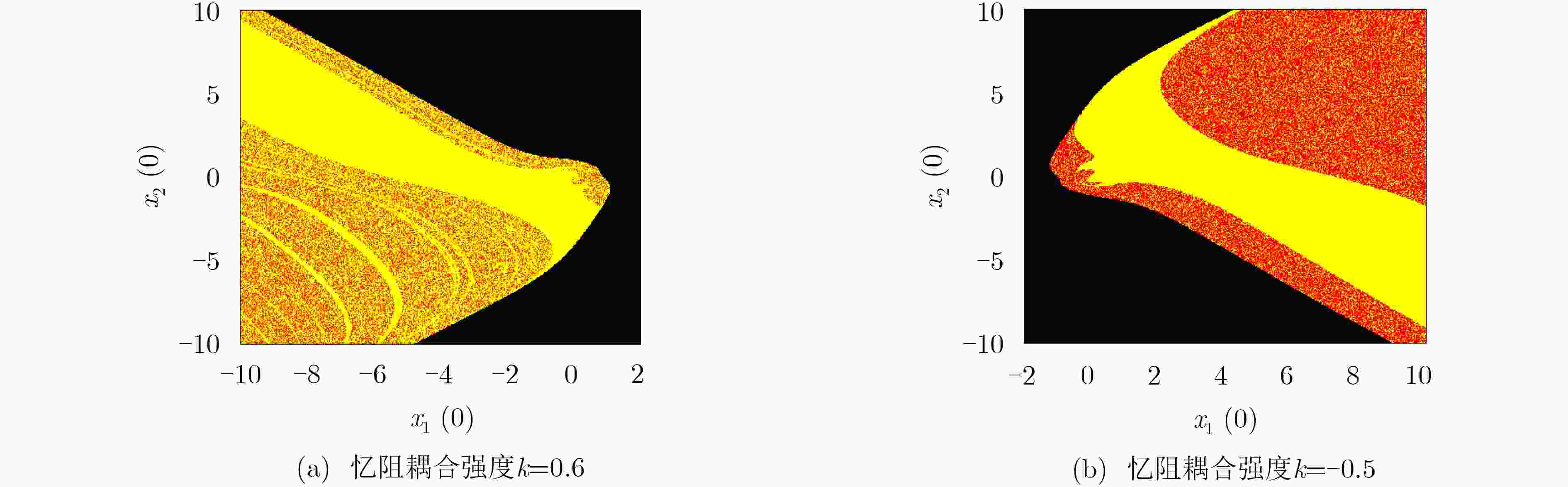 图 6 不同忆阻耦合强度下x1(0)–x2(0)平面的吸引盆