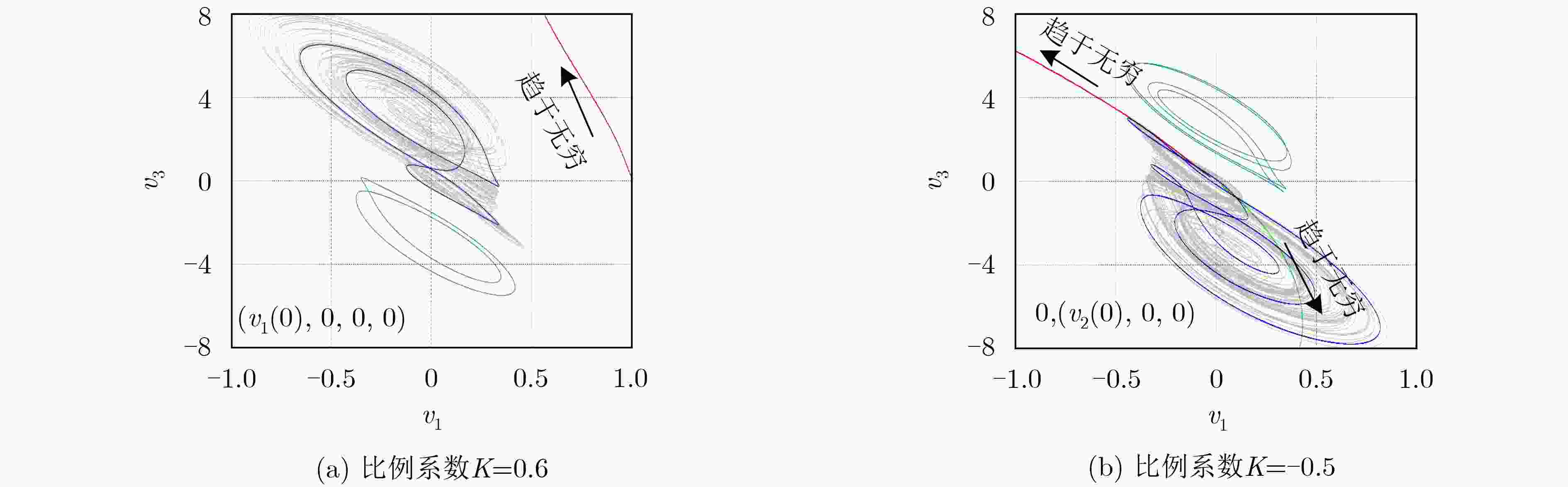 – (0, 5, 0, 0) 发散 表 2 图7中不同颜色吸引子对应的初值及吸引子类型