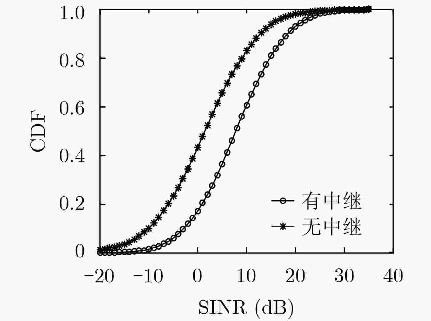 图 7 中继链路下D2D边缘用户的SINR累计分布曲线