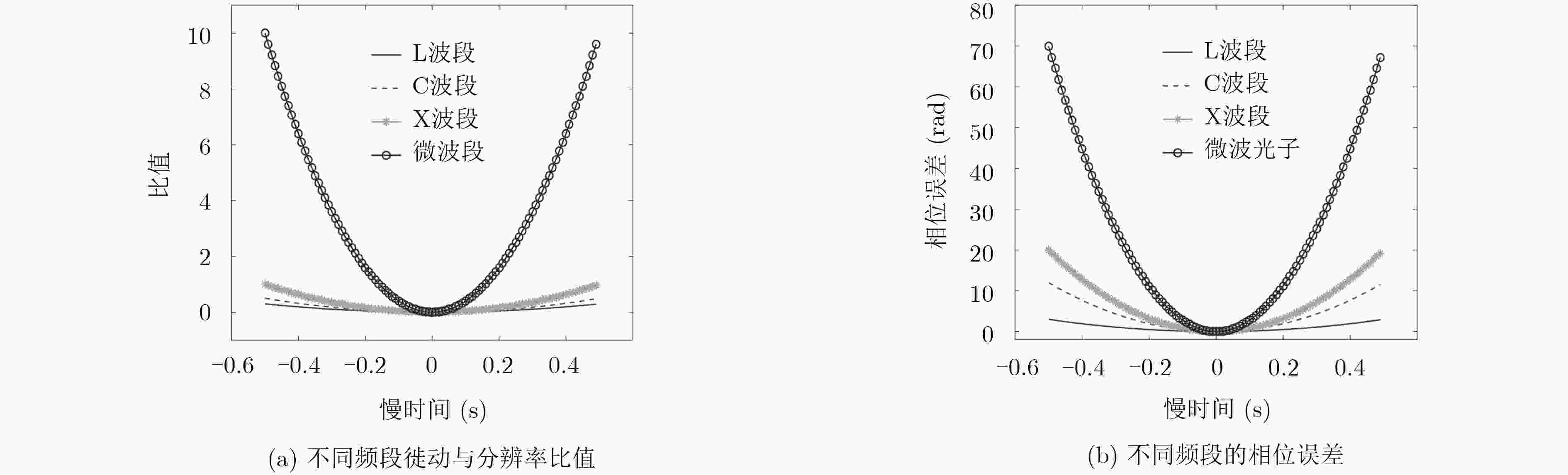 信号频段 发射带宽(GHz) 中心频率(GHz) 距离分辨率(m) $\Delta R$(m) $\Delta P$(rad) L波段 0.3 1.5 0.500 0.6 3 C波段 0.5 6.0 0.300 0.6 12 X波段 1.0 10.0 0.150 0.6 20 微波光子 10.0 35.0 0.015 0.6 70 表 1 不同频段雷达成像误差分析
