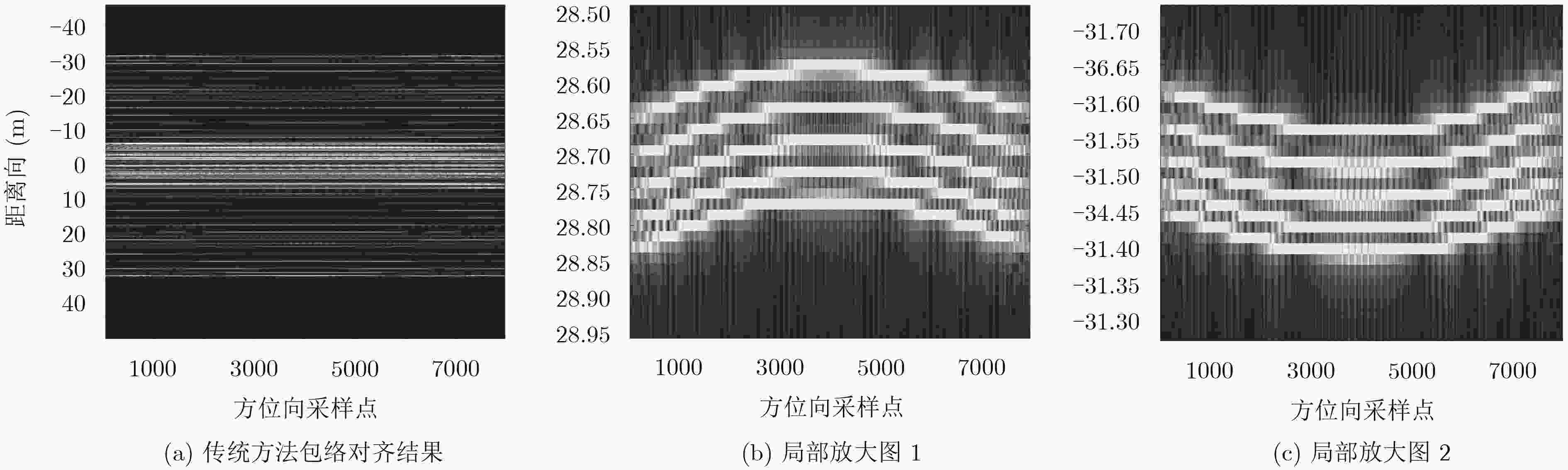 信号带宽 载频 脉冲宽度 脉冲重复频率 采样率 参考斜距 目标速度 观测时间 10 GHz 35 GHz 150 μs 6000 Hz 500 MHz 750 m 83 m/s 1.33 s 表 2 仿真数据参数