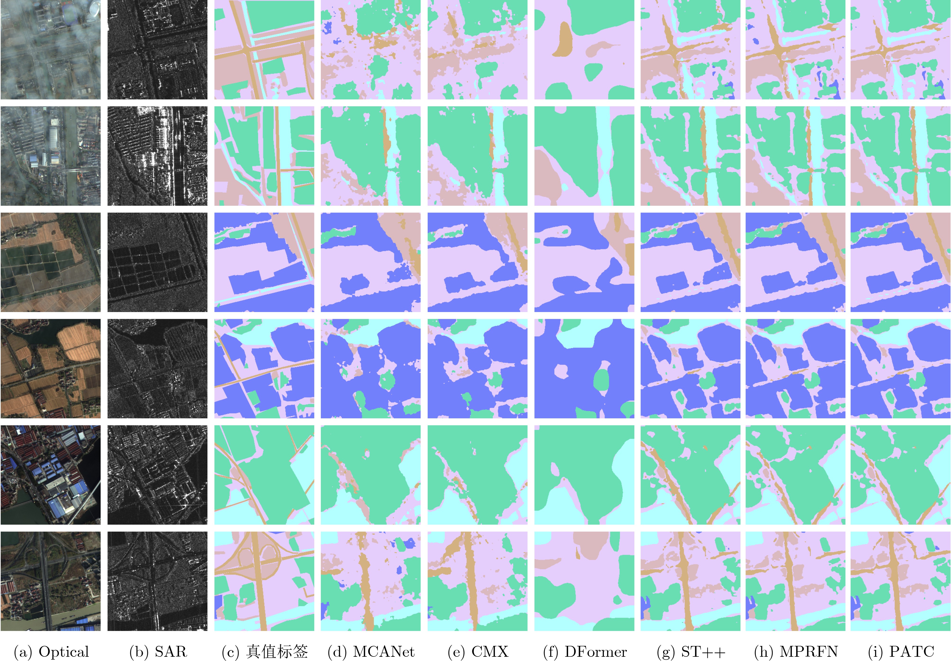 在空天信息智能处理深度融合遥感数据获取与智能解译技术的推动下,城市遥感影像(URSI)语义分割逐渐发展成为连接空天信息与城市计算的关键研究方向。然而,与通用遥感影像相比,URSI中地物目标具有高度多样性和复杂性,表现为同类地物内部细节有差异、不同类地物之间特征相似易混淆,同时地物边界往往模糊且形态不规则,这些因素共同构成了其精细化分割面临的挑战。尽管基于Transformer的遥感影像语义分割方法取得了显著进展,但将其用于URSI时,不仅要考虑其对细节和边缘的提取能力,还需应对自注意力机制带来的计算复杂度等问题。为此,该文在编码器端引入聚焦注意力,以高效捕捉类内和类间关键特征;同时在解码器端对边缘特征进行紧致融合。针对URSI的独特特性,该文提出一种聚焦注意力与紧致特征融合Transformer语义分割模型(F3Former)。首先,在编码器端引入特征聚焦编码块(FFEB),通过建模Query-Key特征对的方向性,在保持较低线性复杂度的同时提升类内特征聚合与类间判别能力;在解码器端设计紧致特征融合模块(CFFM),结合深度卷积降低跨通道冗余计算,增强URSI边缘区域的细粒度分割表现。实验结果表明,该文提出的F3Former在Potsdam, Vaihingen和LoveDA数据集上的mIoU分别为88.33%, 81.32%和53.16%,计算成本减少到35.42 M Params, 48.02 GFLOPs和0.09 s测试时间,相较基线计算成本下降了28.91 M Params和194.86 GFLOPs,显著平衡了URSI语义分割的精度和速度。