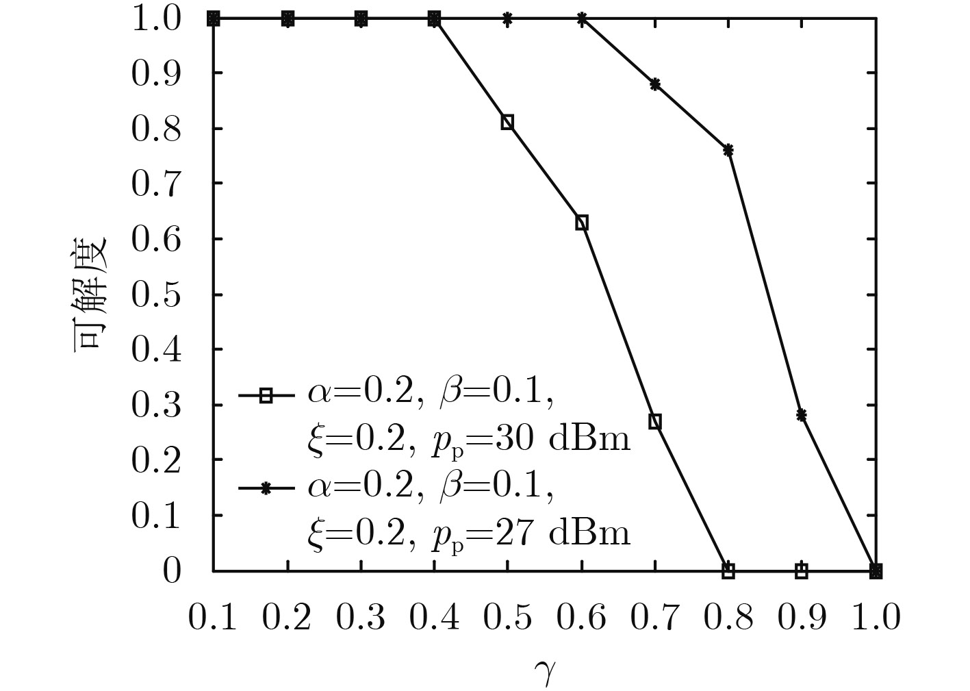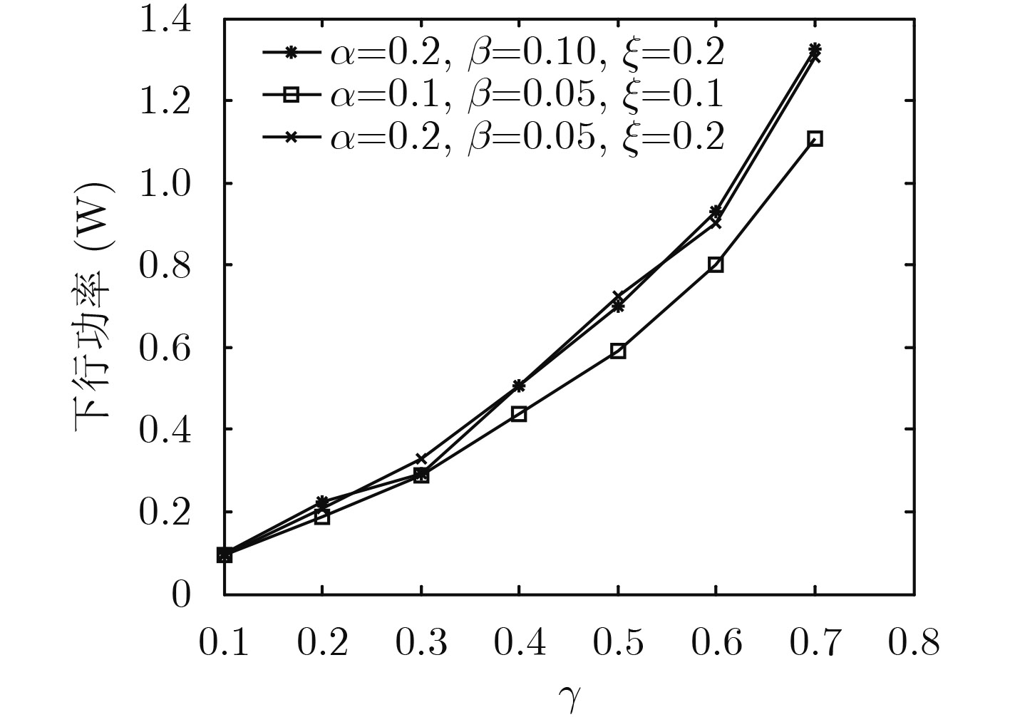 摘要: 针对非理想信道状态信息(CSI)条件下工作于underlay模式的认知无线网络(CRN)多用户下行功率分配和波束赋形研究中普遍存在的问题,包括忽略主网络(PN)对认知用户(SU)的干扰、传统的凸优化SDR方法对约束条件的近似要求以及实现算法复杂、实用性受限等,首先建立CRN模型,增添PN对SU的干扰项,而后在非理想CSI的最差条件下形成优化问题。再通过Lagrange对偶对问题的约束条件进行变换,并基于变换后的问题形式,利用上行和下行的对偶特性,引入虚拟功率,将优化问题转换为上行功率分配和波束赋形问题,进一步得到简便、快速和实用的迭代算法。数值仿真显示,算法收敛很快。并且发现非理想CSI引起的误差不仅对下行功率影响明显而且还改变优化问题的可行解区域;PN基站(PBS)的发送功率的变化对可行解区域有显著的影响。Abstract: Some problems of multi-user downlink power allocation and beamforming in a underlay Cognitive Radio Network (CRN) with imperfect Channel State Information (CSI) are addressed. They include ignoring the interferences of the Primary Network (PN) to the Secondary Users (SU), conventional SDR algorithm of convex optimization needing the constraint approximation, the high complexity of the algorithm, and implemented with difficulty, etc. Firstly the term of interference of the PN to the SU is added to the CRN model. The optimization problem is formulated with the worst-case imperfect CSI. Next the constraints of the problem are transformed by means of Lagrange duality. Then, based on the form of the problem, the simple, fast and practical iterative algorithm is obtained by utilizing the duality of uplink-downlink, introducing virtual power, and transforming the optimization problem into the problem of uplink power allocation and beamforming. Numerical simulation results show that it converges faster. It is also found that the errors of the imperfect CSI not only influence the downlink power but also change the feasibility region. The variation of transmitting power of the PN Base Station (PBS) could affect the feasibility region notably.