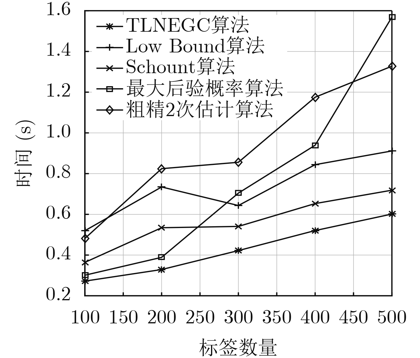 摘要: 针对射频识别技术(RFID)系统中现有标签数量估计算法存在的估计误差大、识别时延长、时间复杂度高的问题,该文提出一种基于高斯拟合与切比雪夫不等式的标签数量2次估计算法(TLNEGC)。首先根据碰撞因子与碰撞时隙比例的关系建立碰撞模型,采用高斯函数对碰撞模型中的离散数据点进行拟合逼近获得高斯估计模型;然后利用高斯估计模型初次估计标签的数量,根据初次估计的结果判断是否需要进行2次估计,2次估计是利用切比雪夫不等式对估计区间进行2次搜索以获得最佳估计值。MATLAB仿真分析表明,该文所提TLNEGC算法的平均估计误差和总时间消耗明显低于现有的高精度标签估计算法,同时具有较低的时间复杂度和较高的稳定性。Abstract: In order to solve the problems of large estimation error, prolonged identification and high time complexity, which exist in tag quantity estimation algorithm in Radio Frequency IDentification (RFID) system, The Twice Labels Number Estimation algorithm based on Gaussian fitting and Chebyshev inequality (TLNEGC) is proposed. Firstly, a collision model is established based on the relationship between the collision factor and the collision time slot ratio, and a Gaussian estimation model is obtained by fitting the Gaussian function to the discrete data points. Afterward, the Gaussian estimation model is used to initially estimate the number of labels, and then according to the results of the initial estimation, judge whether a second estimation is required. The second estimation is performed by using Chebyshev's inequality to search the estimation interval twice to obtain the best estimate. The MATLAB simulation analysis indicates that the average estimation error and total time consumption of the TLNEGC algorithm are significantly lower than those of existing high-precision label estimation algorithms, and it also has lower time complexity and higher stability.