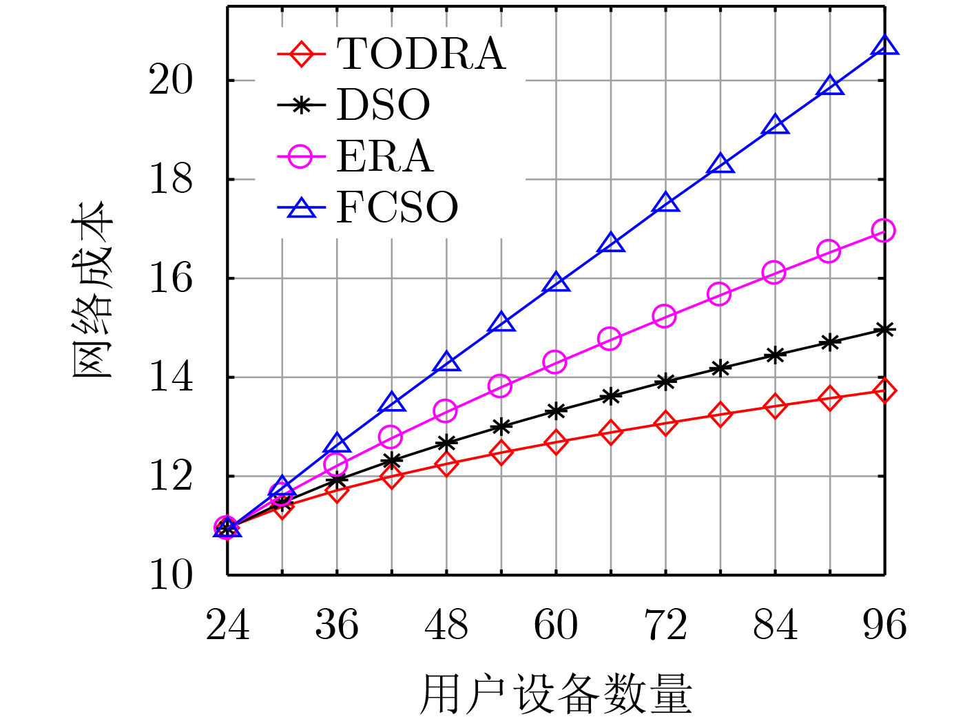 则$ {\phi _{\min }} = {\phi _b} $。(e) $ b = b + 1 $,返回(a)。 (f) 把${\phi _{{\text{res}}}}$代入式(42),得到计算资源的最优解。 (4) 算法结束。 -