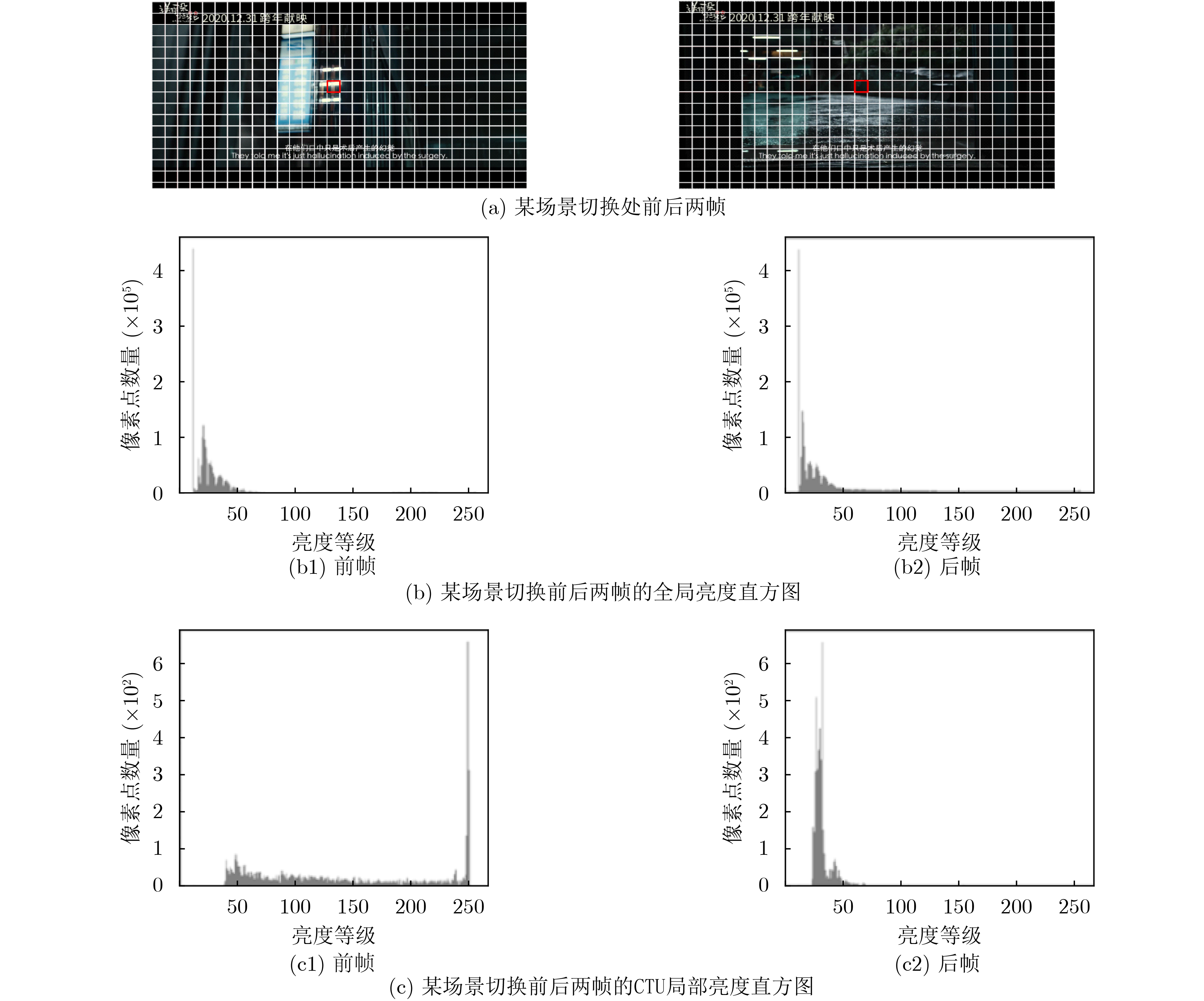 $ {D_{{\text{hist}}}} $ 与局部亮度直方图差异$ {D_{{\text{local\_hist}}}} $ 比较序列 总帧数 场景切换数 $ {D_{{\text{hist}}}} > {D_{{\text{local\_hist}}}} $的场景切换数 ${D_{ {\text{hist} } } } < {D_{ {\text{local\_hist} } } }$的场景切换数 Kimono 240 1 0 1 送你一朵小红花 4089 92 0 92 战狼2 4423 185 0 185 F1赛车越野 1880 48 0 0 表 2 本场景切换检测算法与x265和参考文献[11]的检测准确度对比
