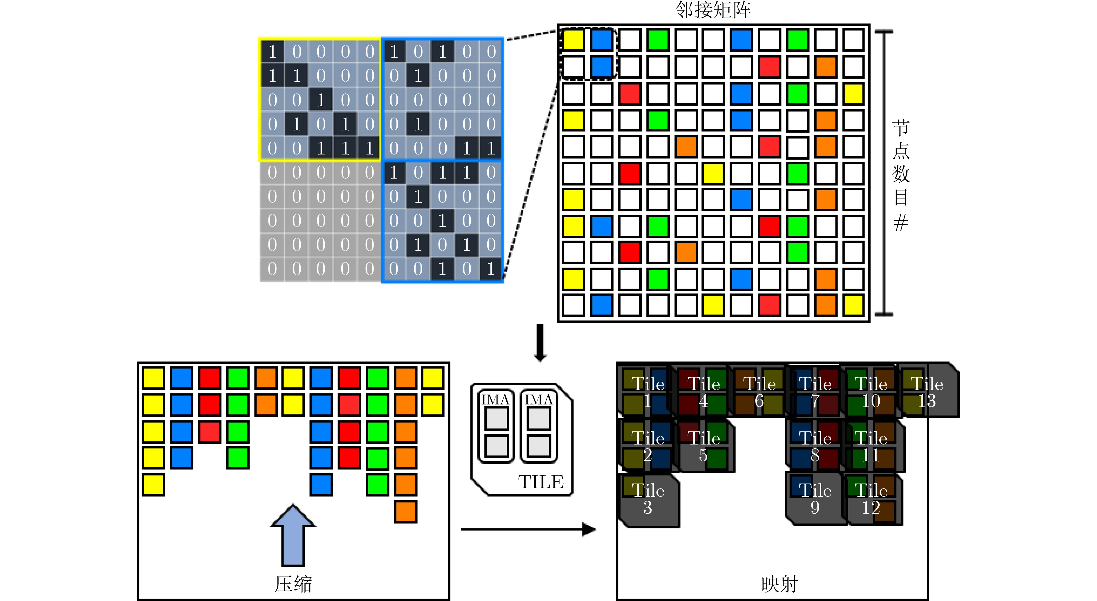 摘要: 图卷积神经网络(GCN)在社交网络、电子商务、分子结构推理等任务中的表现远超传统人工智能算法,在近年来获得广泛关注。与卷积神经网络(CNN)数据独立分布不同,图卷积神经网络更加关注数据之间特征关系的提取,通过邻接矩阵表示数据关系,因此其输入数据和操作数相比卷积神经网络而言都更加稀疏且存在大量数据传输,所以实现高效的GCN加速器是一个挑战。忆阻器(ReRAM)作为一种新兴的非易失性存储器,具有高密度、读取访问速度快、低功耗和存内计算等优点。利用忆阻器为CNN加速已经被广泛研究,但是图卷积神经网络极大的稀疏性会导致现有加速器效率低下,因此该文提出一种基于忆阻器交叉阵列的高效图卷积神经网络加速器,首先,该文分析GCN中不同操作数的计算和访存特征,提出权重和邻接矩阵到忆阻器阵列的映射方法,有效利用两种操作数的计算密集特征并避免访存密集的特征向量造成过高开销;进一步地,充分挖掘邻接矩阵的稀疏性,提出子矩阵划分算法及邻接矩阵的压缩映射方案,最大限度降低GCN的忆阻器资源需求;此外,加速器提供对稀疏计算支持,支持压缩格式为坐标表(COO)的特征向量输入,保证计算过程规则且高效地执行。实验结果显示,该文加速器相比CPU有483倍速度提升和1569倍能量节省;相比GPU也有28倍速度提升和168倍能耗节省。Abstract: Graph Convolutional Networks (GCNs) have superior performance in tasks such as social networking, ecommerce, molecular structure reasoning relative to traditional artificial intelligence algorithms, and have gained intensive attention in recent years. Unlike the independent distribution of data in Convolutional Neural Networks (CNNs), GCNs pay more attention to extract feature relationships between data, which is represented by the adjacency matrix. Therefore, the input data and operands in GCNs are much sparse and there are a large amount of data transmission, which makes it a challenge to implement an efficient GCN accelerator. Resistive Random Access Memory (ReRAM) as a new type of non-volatile memory has the advantages of high density, fast read access, near-zero leakage power and processing in-memory. Using ReRAM to accelerate CNNs has been widely studied. However, the extreme sparsity of GCNs makes it inefficiency to deploy on existing accelerators. In this work, a GCN accelerator based on ReRAM is proposed. First, the calculation and memory access characteristics of different operands in the GCN are analyzed, and a novel weight and adjacency matrix mapping policy is proposed by exploiting the intensive computing characteristic of weight and adjacency matrix, so that avoiding the excessive overhead caused by massive memory accesses; As for the extremely sparse adjacency matrix, a sub-matrix partitioning algorithm and a compression mapping scheme are proposed to minimize the GCN’s ReRAM resource requirements; Moreover, efficient processing on the sparse input feature vector with COOrdinate list (COO) compression format is provided by the proposed accelerator and the regular and efficient execution with the input feature vector are ensured. Experimental results show that the proposed work achieves 483 times speedup and 1569 times energy saving compared to CPU, and achieves 28 times speedup and consumes 168 times less energy over the GPU.