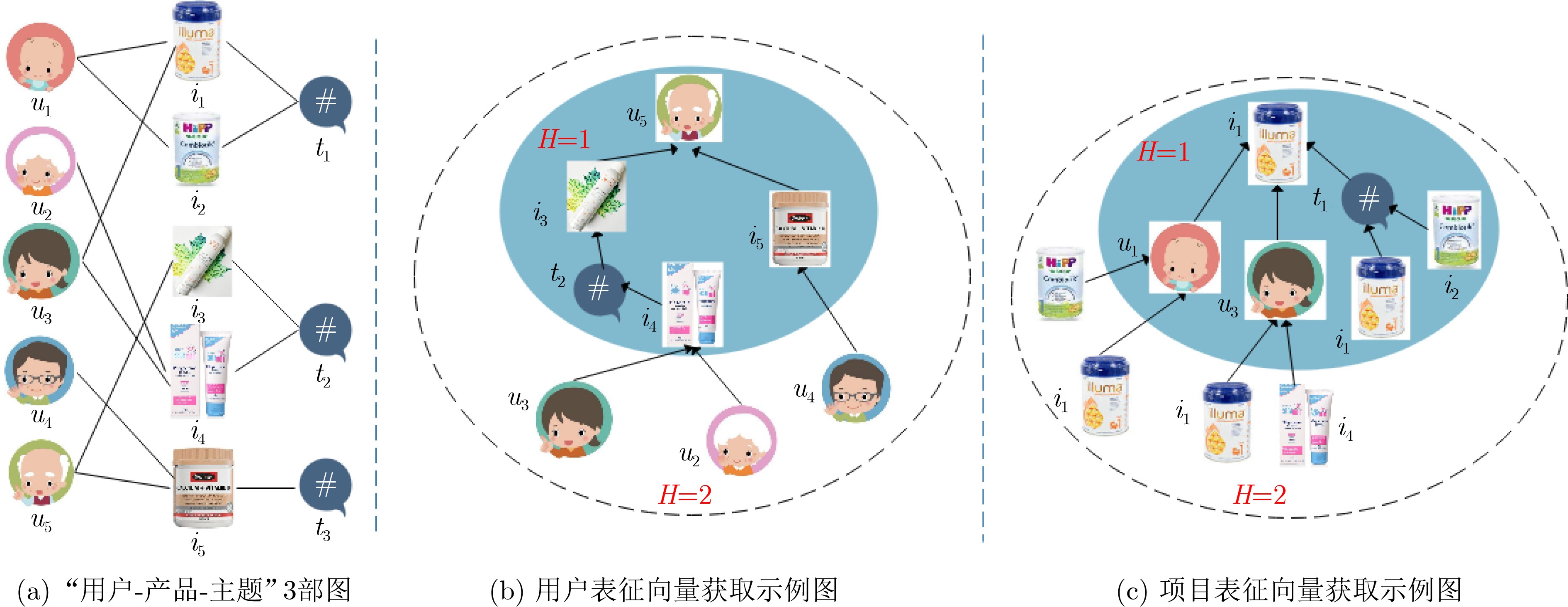 摘要: 跨境电商产品推荐已经成为电子商务领域新兴的研究议题之一。由于电商产品信息复杂多样、“用户-产品”关联矩阵极为稀疏并且冷启动问题突出,因此传统的协同过滤推荐模型很难奏效。而改进的深度协同过滤模型,只考虑了用户对产品的“显式”和“隐式”的反馈信息,忽视了由用户与项目组成的图结构信息,推荐性能很难满足平台和用户的要求。为了解决这些难题,该文提出基于异质图表达学习的图神经网络模型(HGNR)用于个性化的跨境电商产品推荐,该模型具有2个显著的优势:(1) 构造“用户-产品-主题”3部图作为模型的输入,通过图卷积神经网络(GCN)在异质图上进行高质量信息传播和聚合;(2)能够获取高质量的用户和产品表征向量,实现了用户和产品复杂交互关系的建模。在真实的跨境电商订单数据集上的实验结果表明,HGNR模型不仅在推荐性能上表现出色,还能有效提升冷启动用户的推荐准确率,与9种推荐基准算法相比,HGNR在评价指标HitRate@10, Item-coverage@10, MRR@10上至少提升了3.33%, 0.91%, 0.54%。Abstract: Cross-border e-commerce products recommendation has become one of the emerging researching topics in the field of e-commerce. Due to the diversity and complexity of e-commerce product information, the “user-item” correlation matrix is extremely sparse and the cold start problem is prominent. As a result, the traditional collaborative filtering model seems to be malfunctional. Meanwhile, the improved recommendation model based on collaborative filtering or matrix factorization only considers the explicit and implicit feedback information of the users to the products, while ignoring the graph structure information composed of users and items, so that the recommendation performance is difficult to meet the requirements of the platform and users. To tackle these issues, a recommender system of cross-border e-commerce based on heterogeneous graph neural network, named Heterogeneous Graph Neural network Recommender system (HGNR), is proposed in this paper. The model has two significant advantages: (1) the three-part graph is used as input, and high-quality information dissemination and aggregation are carried out on heterogeneous graphs through Graph Convolutional neural Network (GCN); (2) high-quality user and product representation vectors can be obtained, and realize the modeling of the complex interaction between users and products. Experimental results on real cross-border e-commerce order data sets show that HGNR not only owns the superior performance, but also can effectively improve the recommendation accuracy of cold-start users. Compared with nine baseline methods for recommendation, HGNR achieves improvements of at least 3.33%, 0.91%, and 0.54% on evaluation metrics of HitRate@10, Item-coverage@10 and MRR@10.