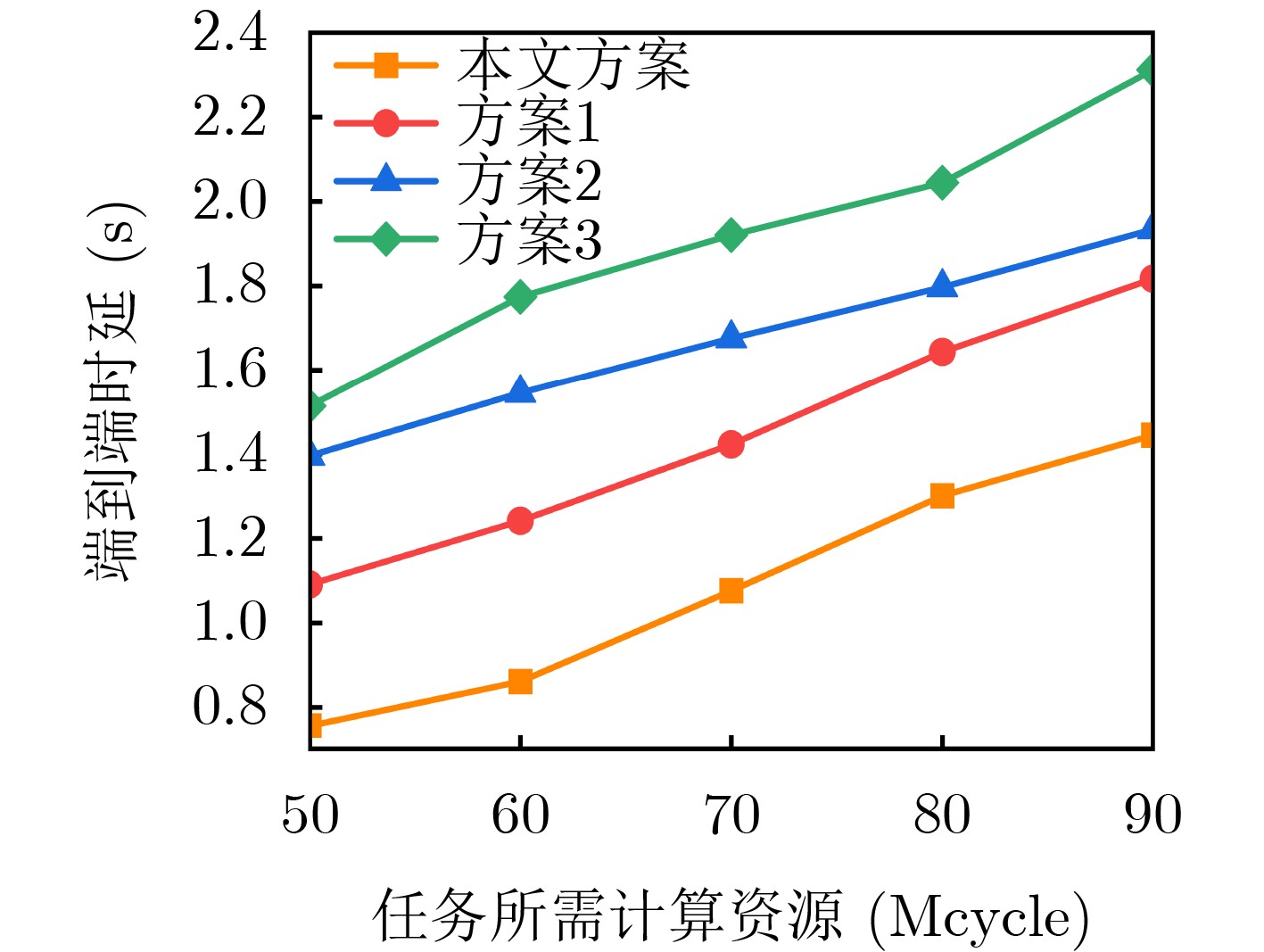 参数名 参数值 参数名 参数值 传感器发射功率$ {\bar p_k} $ 10 dBm[8] 传感器最大计算频率$ F_{\max }^{\rm{se} } $ 3 GHz[7] AP最大发射功率$ {P_{\max }} $ 40 dBm[18] AP最大计算频率$ F_{\max }^{\rm{AP} } $ 10 GHz[7] 输入任务量$ {I_k} $ 100 Mbit[18] 路径损耗$ {\beta _0} $ –30 dB[14] 任务所需计算资源$ {C_k} $ 960×106 cycle[7] 参考距离$ {d_0} $ 10 m[9] 传输总带宽$ B $ 20 MHz[18] 噪声功率$ {N_0} $ –174 dBm/Hz[18] 最大时延与能耗$ {T_{\max }},{E_{\max }} $ 2 s, 1.5 J 有效交换电容系数$ \xi $ 10–28[9] -