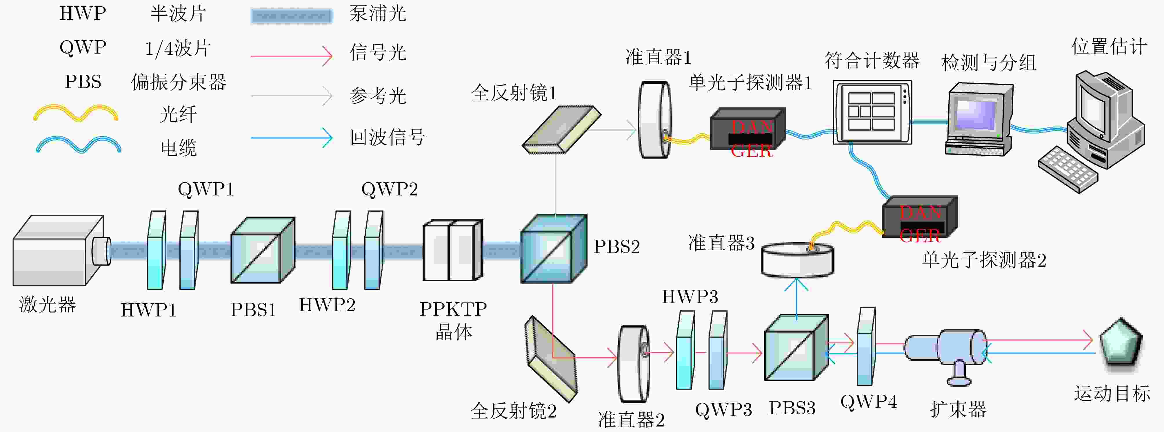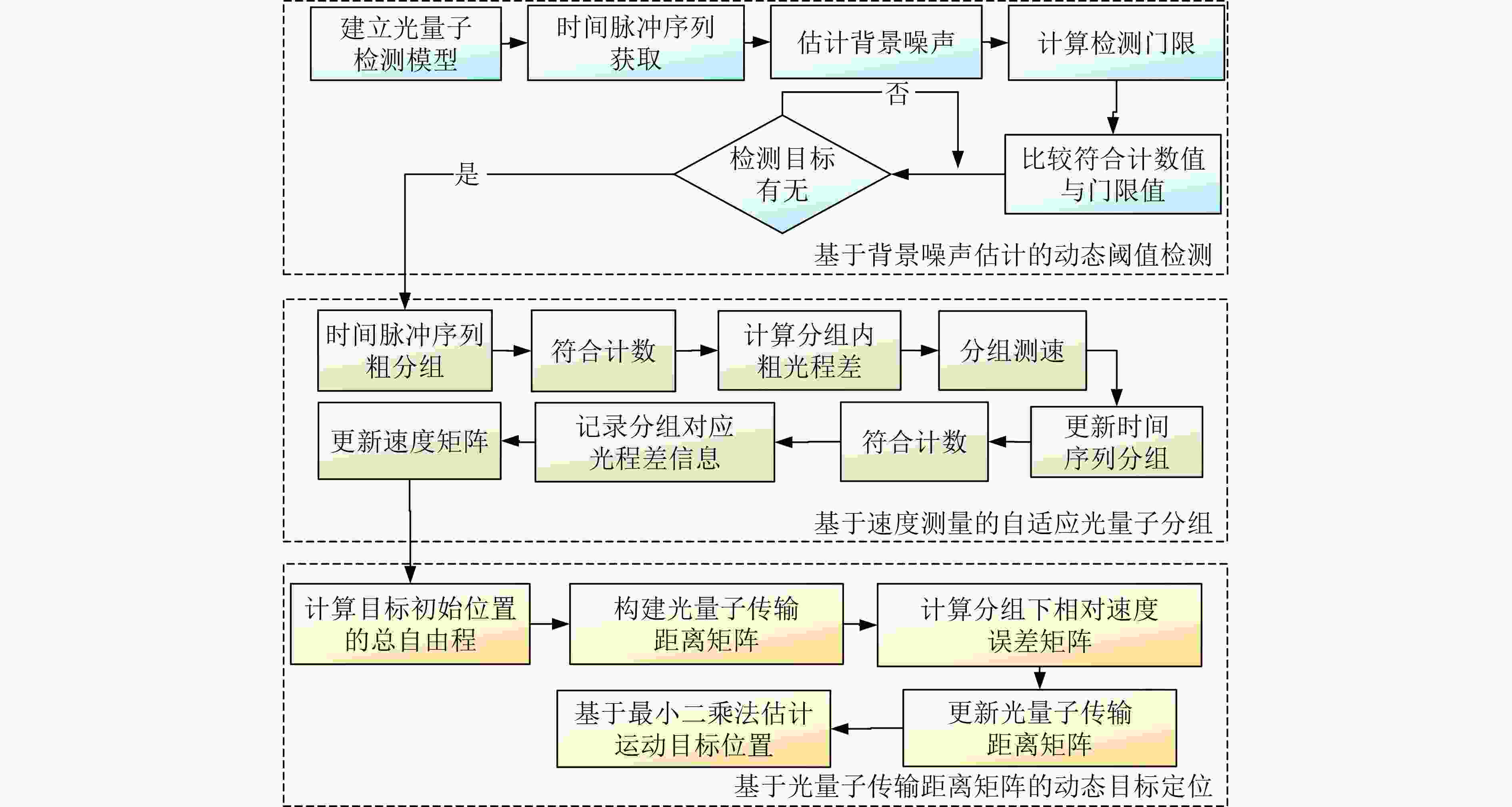 摘要: 利用纠缠态光量子的时间关联特性能够实现对目标的精确定位,但现有量子定位算法主要针对相对静止目标,难以适用于动态目标。于是,该文提出一种基于光量子传输距离矩阵构建的动态目标定位方法,以实现对运动目标的高精度定位。首先,通过对量子回波信号进行分析,结合符合计数结果估计背景噪声,优化检测阈值,实现了高灵敏度的目标检测。其次,利用速度测量矩阵进行自适应光量子分组,以提升定位系统的精确度。最后,通过构建光量子传输距离矩阵,求解光源坐标、目标位置与光量子传输距离的方程组,实现了动态目标位置估计。实测结果表明,该文方法实现了对动态目标的高精度定位,定位误差为厘米级,该方法定位误差在0.06 m内的置信概率达85%,相较于现有光量子定位方法的置信概率提高了69%,相较于传统单光子激光雷达动态目标定位方法提高了31%。Abstract: