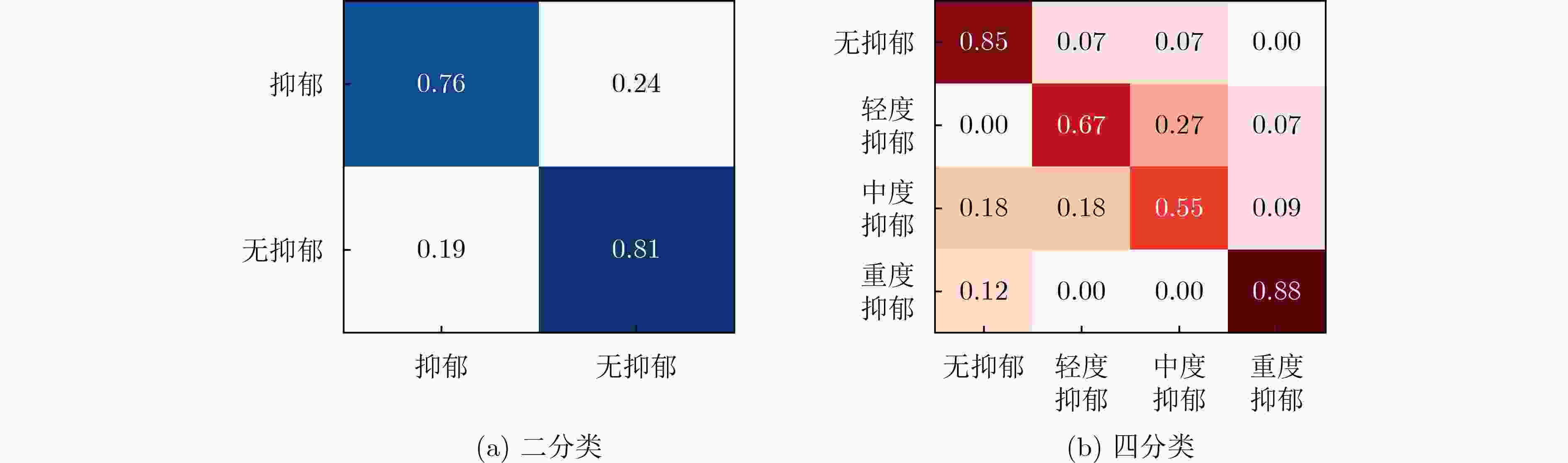 [1] WHO. Depression and other common mental disorders: Global health estimates[R]. 2017. [2] HERRMAN H, PATEL V, KIELING C, et al. Time for united action on depression: A lancet–world psychiatric association commission[J]. The Lancet, 2022, 399(10328): 957–1022. doi: 10.1016/S0140-6736(21)02141-3. [3] THAPAR A, EYRE O, PATEL V, et al. Depression in young people[J]. The Lancet, 2022, 400(10352): 617–631. doi: 10.1016/S0140-6736(22)01012-1. [4] ROBERSON K and CARTER R T. The relationship between race-based traumatic stress and the Trauma Symptom Checklist: Does racial trauma differ in symptom presentation?[J]. Traumatology, 2022, 28(1): 120–128. doi: 10.1037/trm0000306. [5] CARROZZINO D, PATIERNO C, PIGNOLO C, et al. The concept of psychological distress and its assessment: A clinimetric analysis of the SCL-90-R[J]. International Journal of Stress Management, 2023, 30(3): 235–248. doi: 10.1037/str0000280. [6] HAJDUSKA-DÉR B, KISS G, SZTAHÓ D, et al. The applicability of the Beck Depression Inventory and Hamilton Depression Scale in the automatic recognition of depression based on speech signal processing[J]. Frontiers in Psychiatry, 2022, 13: 879896. doi: 10.3389/fpsyt.2022.879896. [7] LEE A and PARK J. Diagnostic test accuracy of the beck depression inventory for detecting major depression in adolescents: A systematic review and meta-analysis[J]. Clinical Nursing Research, 2022, 31(8): 1481–1490. doi: 10.1177/10547738211065105. [8] 张五芳, 马宁, 王勋, 等. 2020年全国严重精神障碍患者管理治疗现状分析[J]. 中华精神科杂志, 2022, 55(2): 122–128. doi: 10.3760/cma.j.cn113661-20210818-00252.ZHANG Wufang, MA Ning, WANG Xun, et al. Management and services for psychosis in the People′s Republic of China in 2020[J]. Chinese Journal of Psychiatry, 2022, 55(2): 122–128. doi: 10.3760/cma.j.cn113661-20210818-00252. [9] BABU N V and KANAGA E G M. Sentiment analysis in social media data for depression detection using artificial intelligence: A review[J]. SN Computer Science, 2022, 3(1): 74. doi: 10.1007/s42979-021-00958-1. [10] EID M M, YUNDONG W, MENSAH G B, et al. Treating psychological depression utilising artificial intelligence: AI for precision medicine-focus on procedures[J]. Mesopotamian Journal of Artificial Intelligence in Healthcare, 2023, 2023: 76–81. doi: 10.58496/MJAIH/2023/015. [11] SANCHEZ A, VAZQUEZ C, MARKER C, et al. Attentional disengagement predicts stress recovery in depression: An eye-tracking study[J]. Journal of Abnormal Psychology, 2013, 122(2): 303–313. doi: 10.1037/a0031529. [12] ZHANG Kaipeng, ZHANG Zhanpeng, LI Zhifeng, et al. Joint face detection and alignment using multitask cascaded convolutional networks[J]. IEEE signal processing letters, 2016, 23(10): 1499–1503. doi: 10.1109/LSP.2016.2603342. [13] WANG Yang, WANG Hongyuan, and XIN Zihao. Efficient detection model of steel strip surface defects based on YOLO-V7[J]. IEEE Access, 2022, 10: 133936–133944. doi: 10.1109/ACCESS.2022.3230894. [14] HO J, KALCHBRENNER N, WEISSENBORN D, et al. Axial attention in multidimensional transformers[J]. arXiv preprint arXiv: 1912.12180, 2019. [15] LIU Zhuang, MAO Hanzi, WU Chaoyuan, et al. A ConvNet for the 2020s[C]. The IEEE/CVF Conference on Computer Vision and Pattern Recognition, New Orleans, USA, 2022: 11966–11976. doi: 10.1109/CVPR52688.2022.01167. [16] WOO S, PARK J, LEE J Y, et al. CBAM: Convolutional block attention module[C]. The 15th European Conference on Computer Vision (ECCV), Munich, Germany, 2018: 3–19. doi: 10.1007/978-3-030-01234-2_1. [17] HE Kaiming, ZHANG Xiangyu, REN Shaoqing, et al. Deep residual learning for image recognition[C]. The IEEE Conference on Computer Vision and Pattern Recognition, Las Vegas, USA, 2016: 770–778. doi: 10.1109/CVPR.2016.90. [18] SELVARAJU R R, COGSWELL M, DAS A, et al. Grad-CAM: Visual explanations from deep networks via gradient-based localization[C]. The IEEE International Conference on Computer Vision, Venice, Italy, 2017: 618–626. doi: 10.1109/ICCV.2017.74. [19] ZHOU Xiuzhuang, JIN Kai, SHANG Yuanyuan, et al. Visually interpretable representation learning for depression recognition from facial images[J]. IEEE Transactions on Affective Computing, 2020, 11(3): 542–552. doi: 10.1109/TAFFC.2018.2828819. [20] DE MELO W C, GRANGER E, and HADID A. Depression detection based on deep distribution learning[C]. 2019 IEEE International Conference on Image Processing (ICIP), Taipei, China, 2019: 4544–4548. doi: 10.1109/ICIP.2019.8803467. [21] DE MELO W C, GRANGER E, and LOPEZ M B. Encoding temporal information for automatic depression recognition from facial analysis[C]. ICASSP 2020–2020 IEEE International Conference on Acoustics, Speech and Signal Processing (ICASSP), Barcelona, Spain, 2020: 1080–1084. doi: 10.1109/ICASSP40776.2020.9054375. [22] SONG Siyang, JAISWAL S, SHEN Linlin, et al. Spectral representation of behaviour primitives for depression analysis[J]. IEEE Transactions on Affective Computing, 2022, 13(2): 829–844. doi: 10.1109/TAFFC.2020.2970712. [23] 于明, 徐心怡, 师硕, 等. 基于面部深度空时特征的抑郁症识别算法[J]. 电视技术, 2020, 44(11): 12–18. doi: 10.16280/j.videoe.2020.11.04.YU Ming, XU Xinyi, SHI Shuo, et al. Depression recognition algorithm based on facial deep spatio-temporal features[J]. Video Engineering, 2020, 44(11): 12–18. doi: 10.16280/j.videoe.2020.11.04. [24] HE Lang, CHAN J C W, and WANG Zhongmin. Automatic depression recognition using CNN with attention mechanism from videos[J]. Neurocomputing, 2021, 422: 165–175. doi: 10.1016/j.neucom.2020.10.015. [25] NIU Mingyue, TAO Jianhua, and LIU Bin. Multi-scale and multi-region facial discriminative representation for automatic depression level prediction[C]. The ICASSP 2021–2021 IEEE International Conference on Acoustics, Speech and Signal Processing, Toronto, Canada, 2021: 1325–1329. doi: 10.1109/ICASSP39728.2021.9413504. [26] ZHENG Yajing, WU Xiaohang, LIN Xia