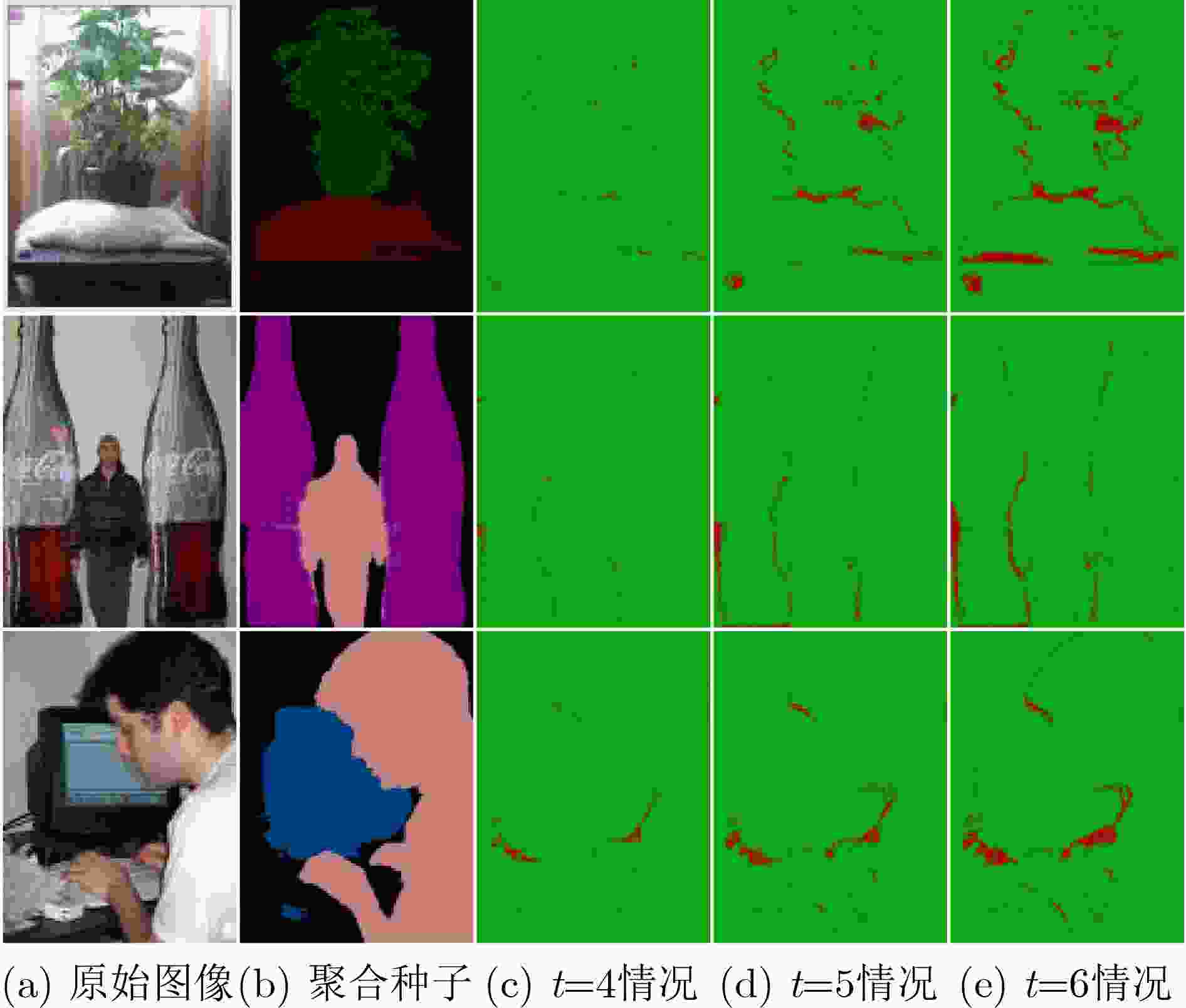 (不同阈值t)6 70.96 7 71.26 8 71.22 注:粗体表示最优值 表 9 六个种子及聚合种子与真值标签在同一像素位置的类别标签一致率和不一致率比较(%)