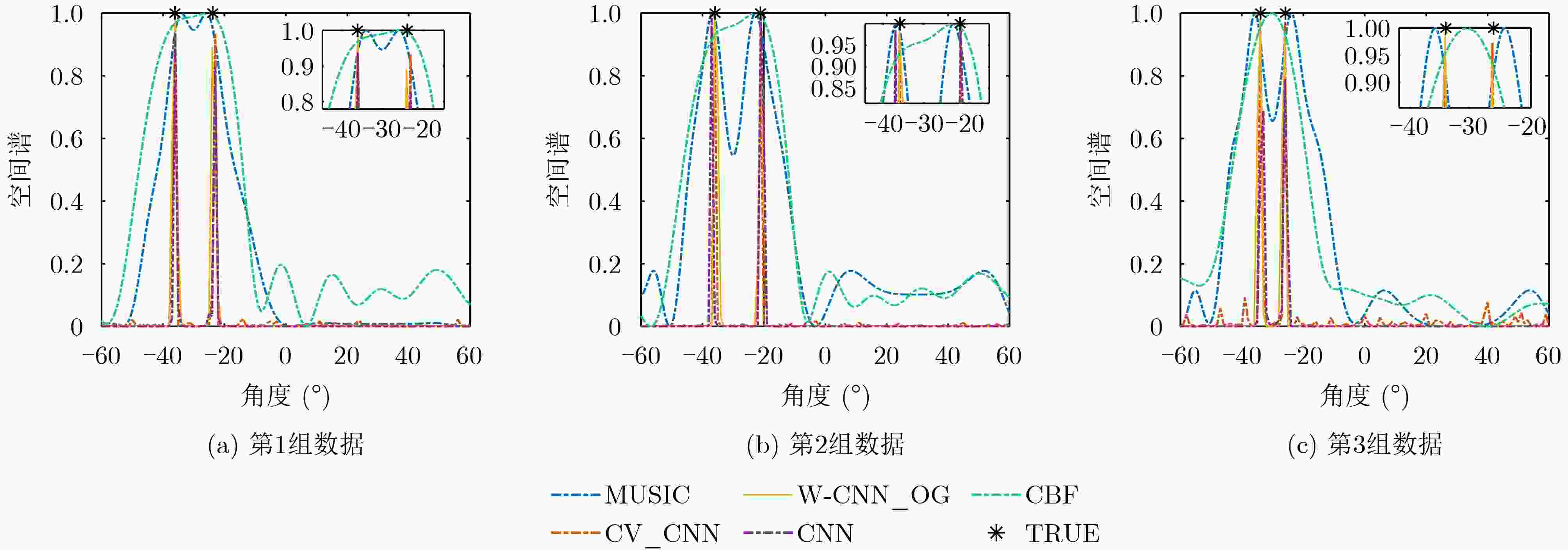 表  1  3组实测数据中各算法估计的RMSE(°)