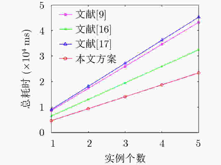 符号 执行操作 平均耗时 $ {T}_{\mathrm{M}} $ 矩阵或向量模乘 4.512 $ {T}_{\mathrm{h}} $ 哈希运算 11.135 $ {T}_{\mathrm{G}} $ 高斯采样算法运算 9.531 $ {T}_{\mathrm{M}\mathrm{u}\mathrm{l}} $ 多项式模乘 0.028 表 2 具体实例比较情况