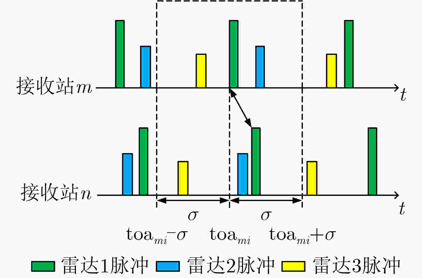 雷达序号 接收站1 接收站2 接收站3 E1 168 160 141 E2 149 138 136 E3 91 92 82 E4 83 78 78 E5 67 63 57 E6 56 53 52 E7 53 50 46 E8 40 35 40 E9 28 29 24 干扰脉冲 147 104 66 接收脉冲总数 882 802 722 配对成功脉冲 518 518 518 表 3 基于Dirichlet过程混合模型的多站时差分选结果
