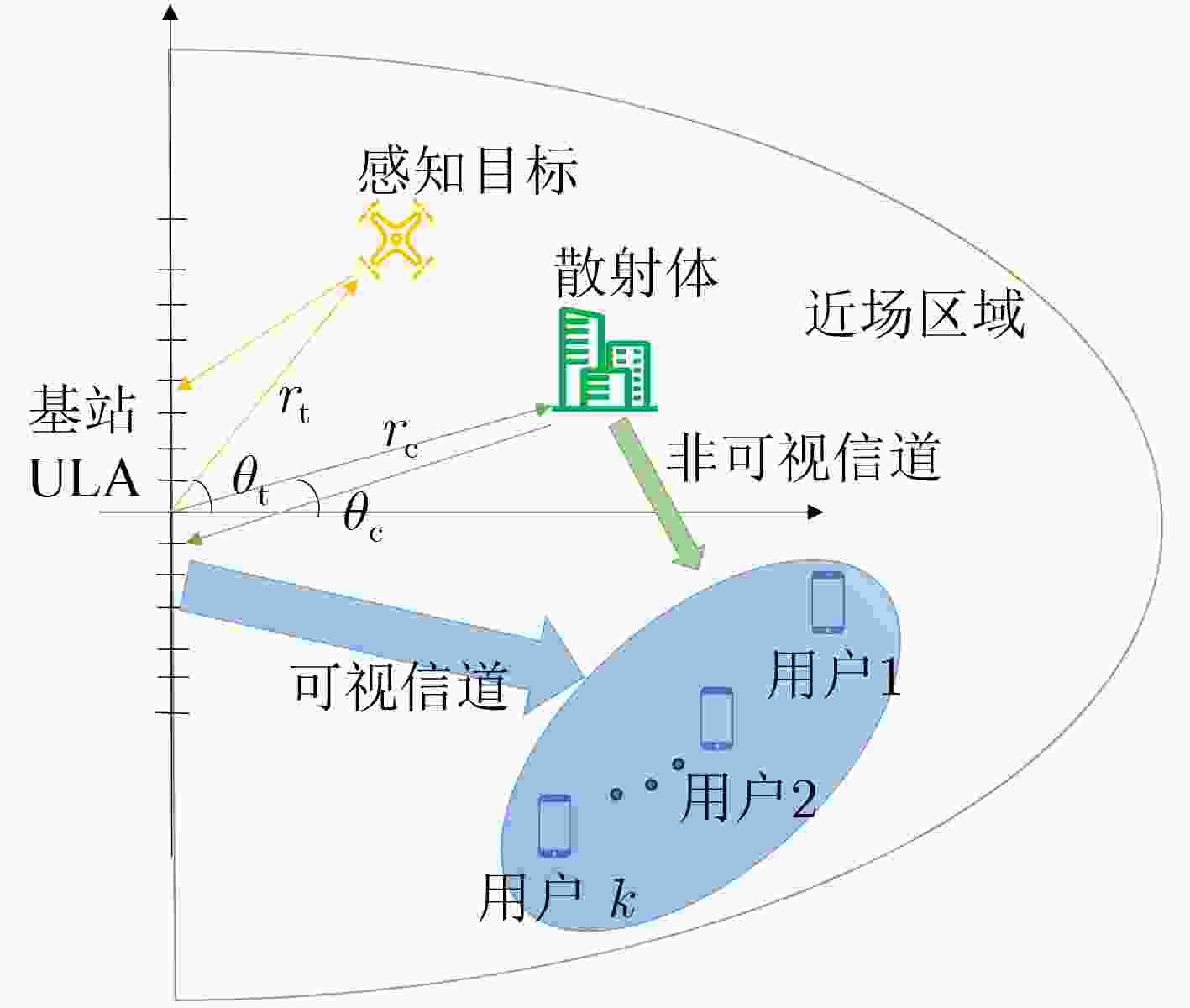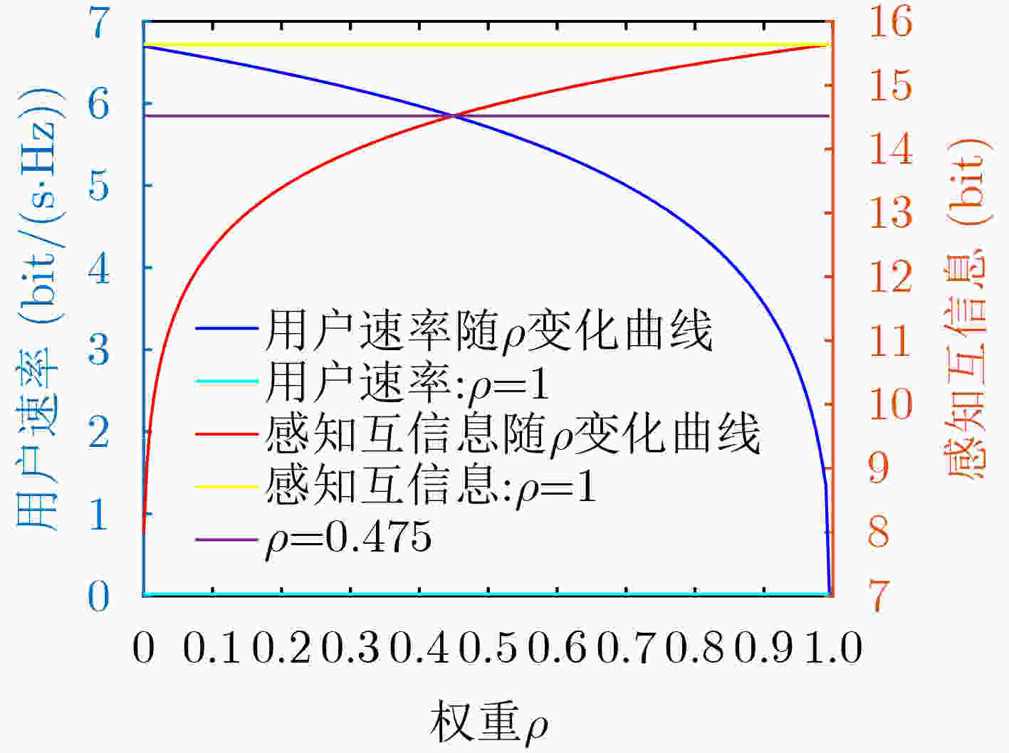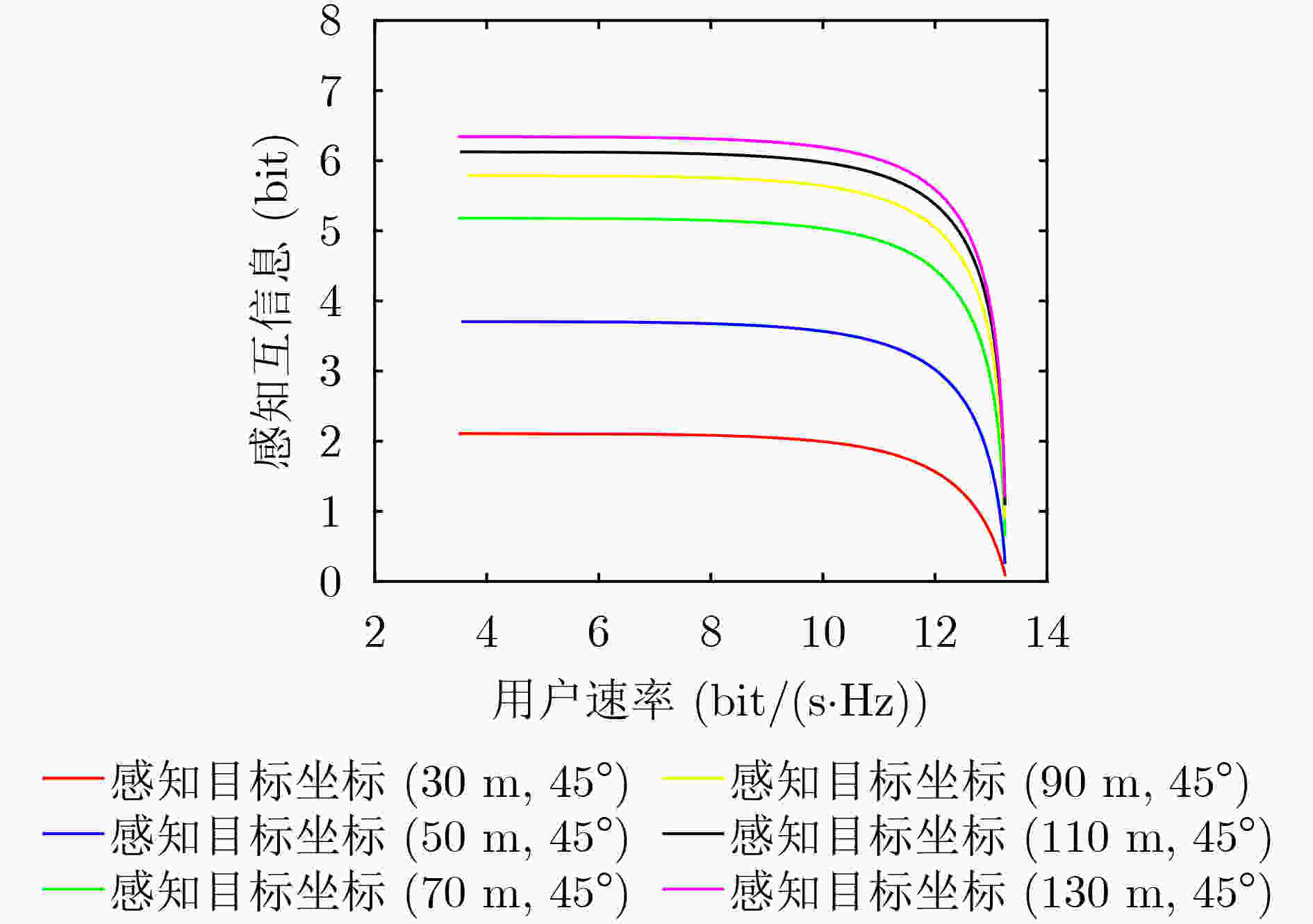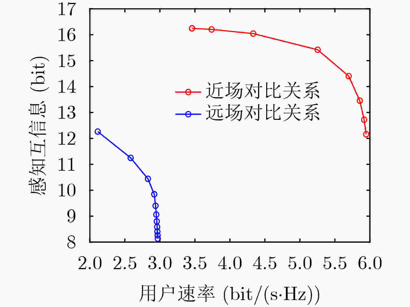 Abstract:Objective With the rapid development of Sixth-Generation (6G) communication technology, Integrated Sensing And Communication (ISAC) systems are regarded as key enablers of emerging applications such as the Internet of Things, smart cities, and autonomous driving. High-precision communication and sensing are required under limited spectrum resources. However, most existing studies concentrate on the far-field region, where incomplete derivation of the sensing mutual information metric, neglect of scatterer interference, and insufficient consideration of communication-sensing trade-offs limit the flexibility of beamforming design and reduce practical effectiveness. As application scenarios expand, the demand for efficient integration of communication and sensing becomes more pronounced, particularly in near-field environments where scatterer interference strongly affects system performance In this work, beamforming design for near-field ISAC systems under scatterer interference is investigated. A general expression for sensing mutual information is derived, a multi-objective optimization problem is formulated, and auxiliary variables, the Schur complement, and the Dinkelbach algorithm are employed to obtain Pareto optimal solutions. The proposed method provides a flexible and effective approach for balancing communication and sensing performance, thereby enhancing overall system performance and resource utilization in diverse application scenarios. The findings serve as a valuable reference for the optimal trade-off design of communication and sensing in near-field ISAC systems. Methods The proposed beamforming design method first derives a general expression for sensing mutual information in near-field scenarios, explicitly accounting for and quantifying the effect of scatterer interference on sensing targets. A multi-objective optimization problem is then formulated, with the Signal-to-Interference-plus-Noise Ratio (SINR) of communication users and sensing mutual information as objectives. Within this multi-objective framework, communication and sensing performance can be flexibly balanced to satisfy the requirements of different application scenarios. To enable tractable optimization, the sensing mutual information expression is transformed into a Semi-Definite Programming (SDP) problem using auxiliary variables and the Schur complement. Multi-user SINR expressions are reformulated with the Dinkelbach algorithm to convert them into convex functions, facilitating efficient optimization. The multi-objective problem is subsequently reduced to a single-objective one by constructing a system utility function, and the Pareto optimal solution is obtained to achieve the optimal balance between communication and sensing performance. This method provides a flexible and effective design strategy for near-field ISAC systems, substantially enhancing overall system performance and resource utilization. Results and Discussions This study presents a beamforming design method that balances communication and sensing performance through innovative optimization strategies. The method derives the general expression of sensing mutual information under scatterer interference, formulates a multi-objective optimization problem with the SINR of communication users and sensing mutual information as objectives, and transforms the problem into a convex form using auxiliary variables, the Schur complement, and the Dinkelbach algorithm. The Pareto optimal solution is then obtained via a system utility function, enabling the optimal balance between communication and sensing performance. Simulation results demonstrate that adjusting the weight parameter ρ flexibly balances user communication and target sensing performance ( Fig. 2 ). As ρ increases from 0 to 1, sensing mutual information rises while user rate decreases, showing that a controllable trade-off can be achieved by tuning weights. In multi-user scenarios, near-field ISAC systems exhibit superior performance compared with far-field systems (Fig. 3 ). Under near-field conditions, the proposed method achieves more flexible and adjustable trade-offs than the classic Zero-Forcing (ZF) algorithm and single-objective optimization algorithms (Fig. 4 ,Fig. 5 ), confirming its effectiveness and superiority in practical applications. Furthermore, the study reveals the interference pattern of scatterers on sensing targets with respect to distance (Fig. 6 ). The results indicate that the greater the distance difference between a scatterer and a sensing target, the weaker the interference on the target, with sensing mutual information gradually increasing and eventually converging. This finding provides a valuable reference for the design of near-field ISAC systems.Conclusions This paper proposes a beamforming design method for balancing communication and sensing performance by jointly optimizing sensing mutual information and communication rate. The method derives the general form of sensing mutual information, reformulates it as an SDP problem, and applies the Dinkelbach algorithm to process multi-user SINR expressions, thereby establishing a multi-objective optimization framework that can flexibly adapt to diverse application requirements. The results demonstrate three key findings: (1) The method enables flexible adjustment of communication and sensing performance, achieving an optimal trade-off through weight tuning, and allowing dynamic adaptation of system performance to specific application needs. (2) It reveals the interference pattern of scatterers on sensing targets with respect to distance, providing critical insights for near-field ISAC system design and supporting optimized system layout and parameter selection in complex environments. (3) In multi-user scenarios, the proposed approach outperforms traditional single-objective optimization methods in both communication rate and sensing mutual information, highlighting its competitiveness and practi