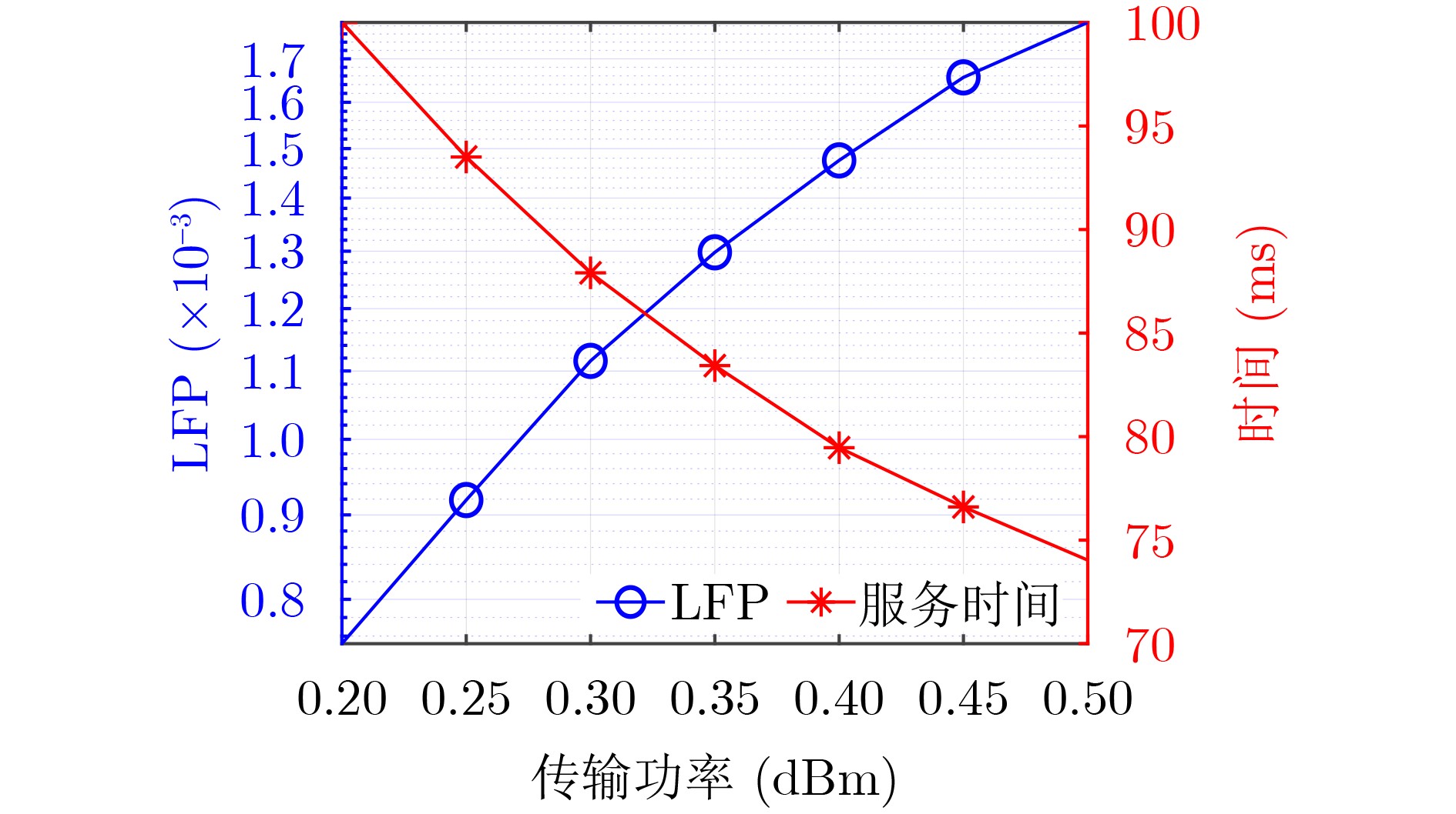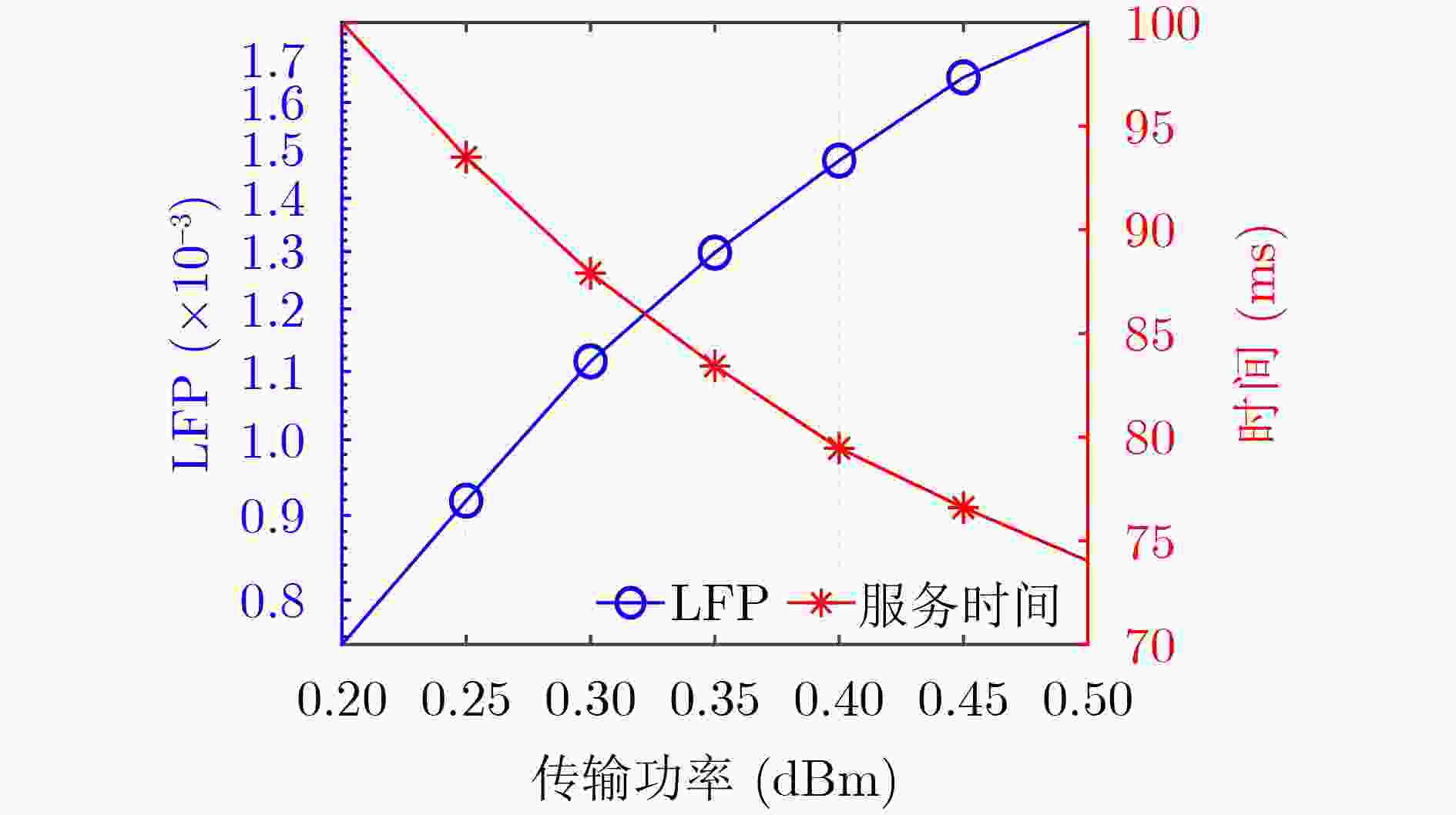图  6  LFP和服务时间随传输功率的变化