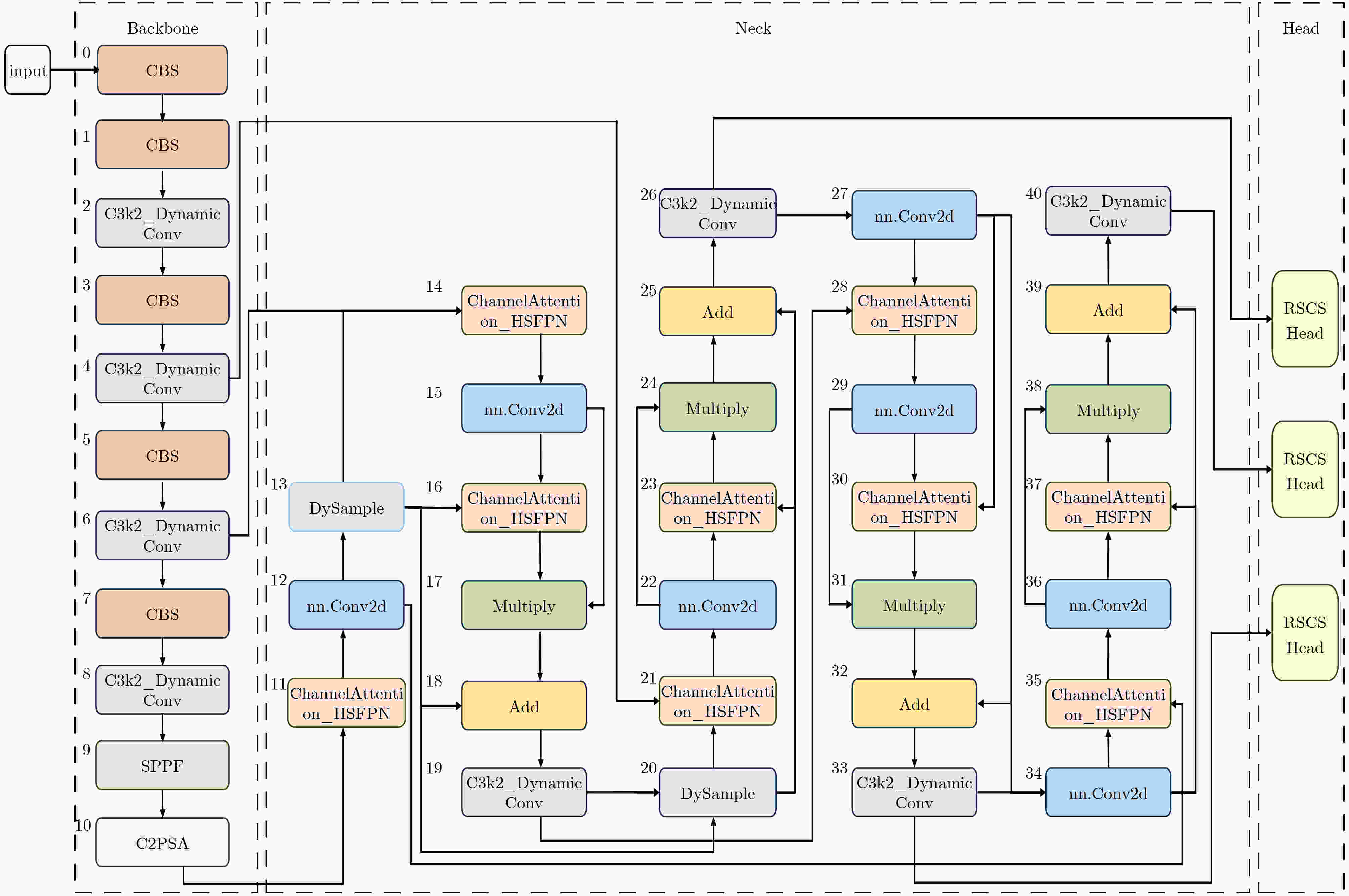 实验序号 模块1 模块2 模块3 参数量(M) GFLOPs 模型大小 准确率 mAP50 基准模型 × × × 2.83 10.40 6.00 0.76 0.51 1 √ × × 3.71 10.00 7.80 076 0.52 2 × √ × 2.08 9.00 4.50 0.75 0.50 3 × × √ 2.58 9.10 7.00 0.76 0.51 4 √ √ × 2.63 8.90 5.60 0.76 0.51 5 √ × √ 3.44 8.90 8.70 0.75 0.52 6 × √ √ 1.89 8.10 4.60 0.73 0.49 7 √ √ √ 2.44 8.00 5.70 0.77 0.51 表 2 对比实验结果