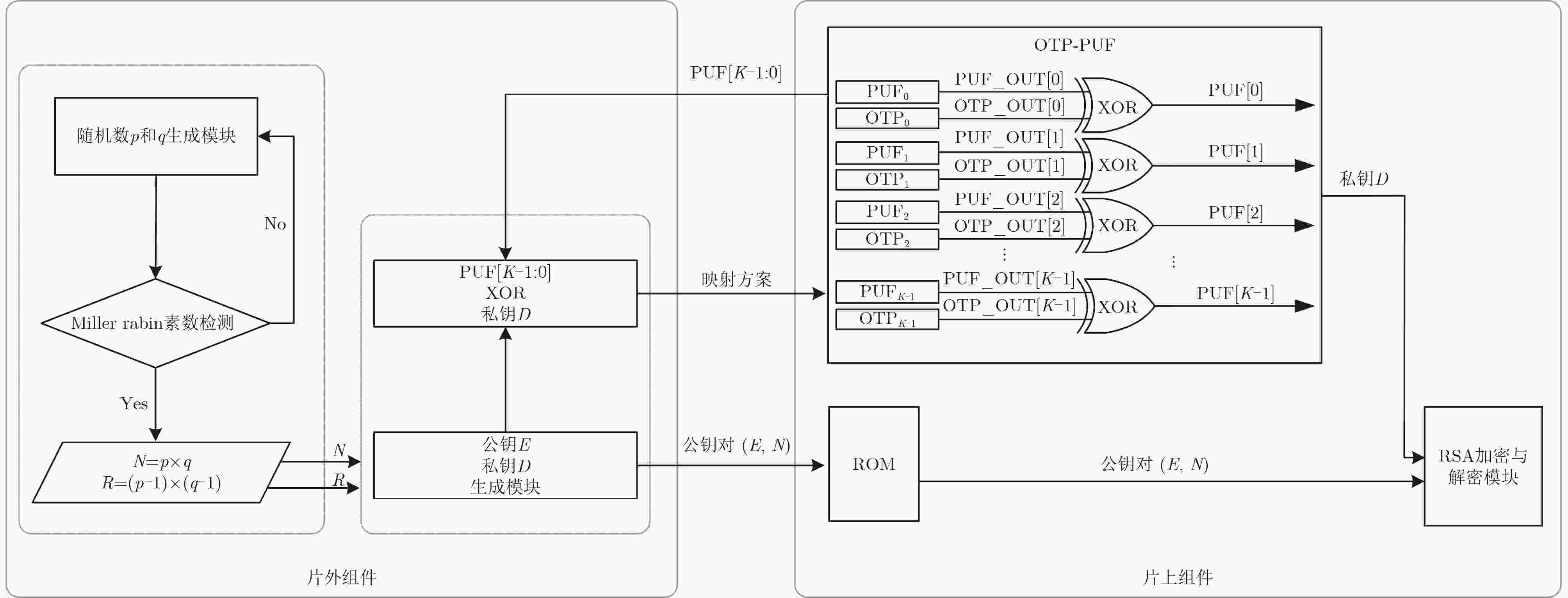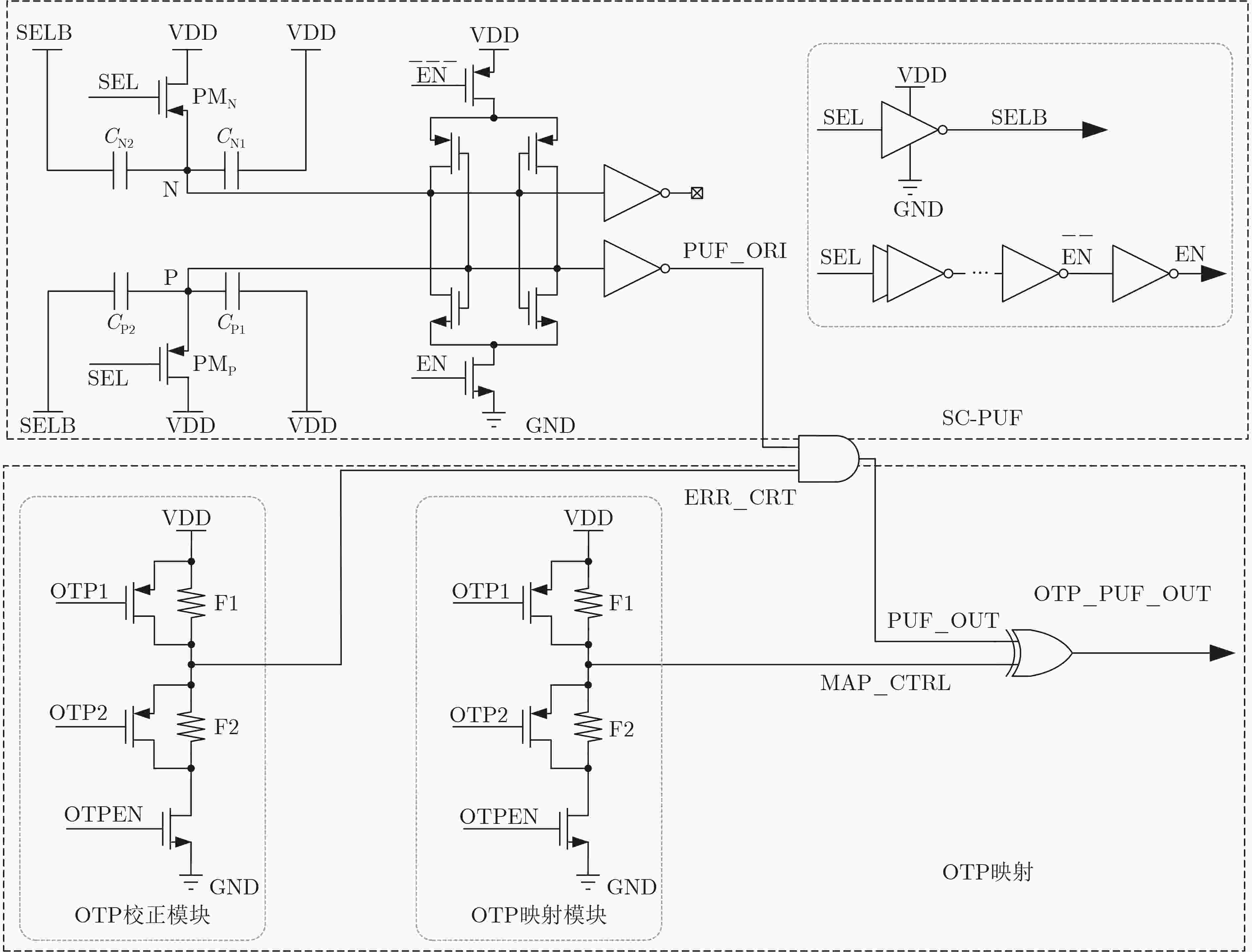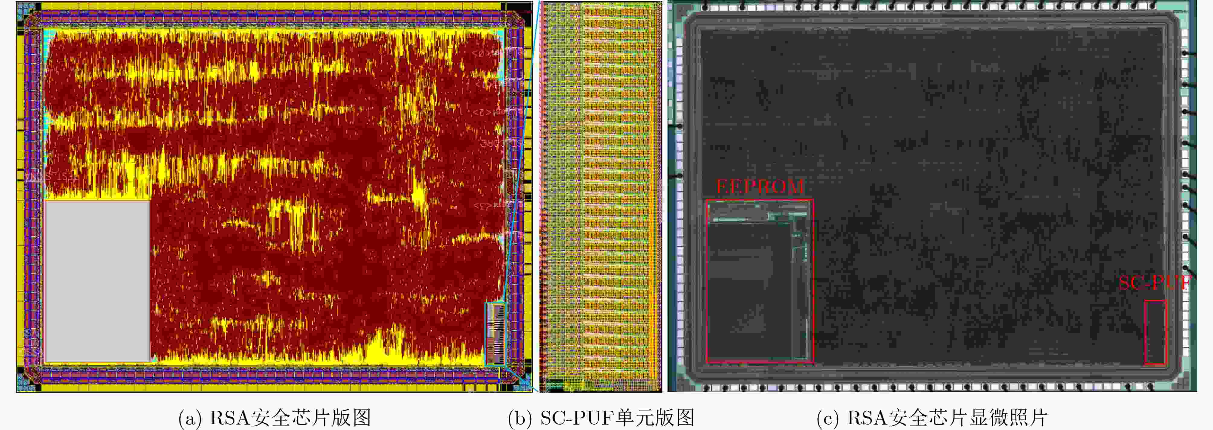 摘要: Rivest-Shamir-Adleman(RSA)加密算法作为一种非对称加密算法,被认为是目前最安全的加密方法之一。传统RSA私钥存在存储开销大、功耗高和易受攻击等问题,针对RSA私钥面临非易失性存储器(NVM)存储依赖及物理探测攻击,该文提出一种新型RSA私钥生成架构,该方案基于SMIC 180 nm 标准CMOS工艺,利用全定制开关电容物理不可克隆函数(SC-PUF)单元产生随机密钥,采用片上1次可编程单元(OTP)将SC-PUF的输出随机密钥直接映射为满足要求的RSA私钥,完全消除NVM依赖。同时SC-PUF提供的容性敏感金属层能够有效保护OTP的编辑状态不被攻击者获取,保证了整个密钥产生电路的安全性。实验结果显示,芯片总体面积为18.77 mm2,功耗218 mW,基于SC-PUF和OTP的RSA私钥产生电路不仅能够有效产生密钥,且整个RSA算法工作正常,验证了该新型RSA私钥生成架构的可行性和安全性。Abstract: