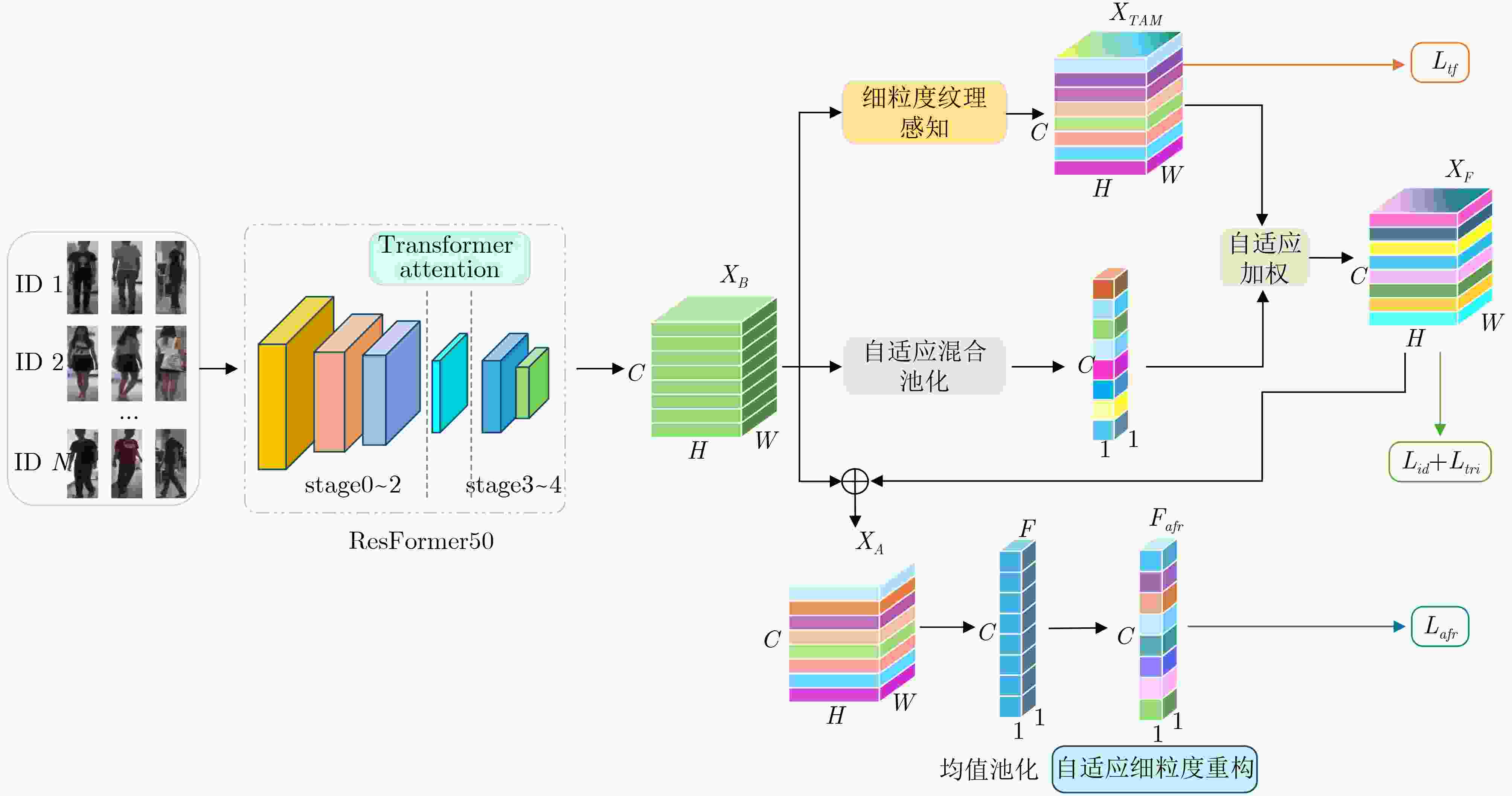 摘要: 针对换衣行人重识别(CC Re-ID)任务中存在的有效特征提取困难和训练样本不足的问题,提出了一种融合三重感知细粒度重构的换衣行人重识别方法,利用细粒度纹理感知模块处理后的纹理特征与深度特征进行拼接,提高服装变化下的识别能力,引入Transformer注意力机制的ResFormer50网络增强模型对图像特征提取的感知能力,通过自适应混合池化模块(AHP)进行通道级自主感知聚合,对特征进行深层次细粒度挖掘,从而达到整体表征一致性与服装变化泛化性并重的效果。新的自适应细粒度重构策略(AFR)通过细粒度级别的对抗性扰动与选择性重构,在不依赖显式监督的前提下,显著提升模型对服装变换、局部细节扰动的鲁棒性和泛化能力,从而提高模型在实际场景中的识别准确率。大量实验结果表明了所提方法的有效性,在LTCC和PRCC数据集换衣场景下,Rank-1/mAP分别达到了45.6%/19.8%和70.6%/69.1%,优于同类前沿方法。