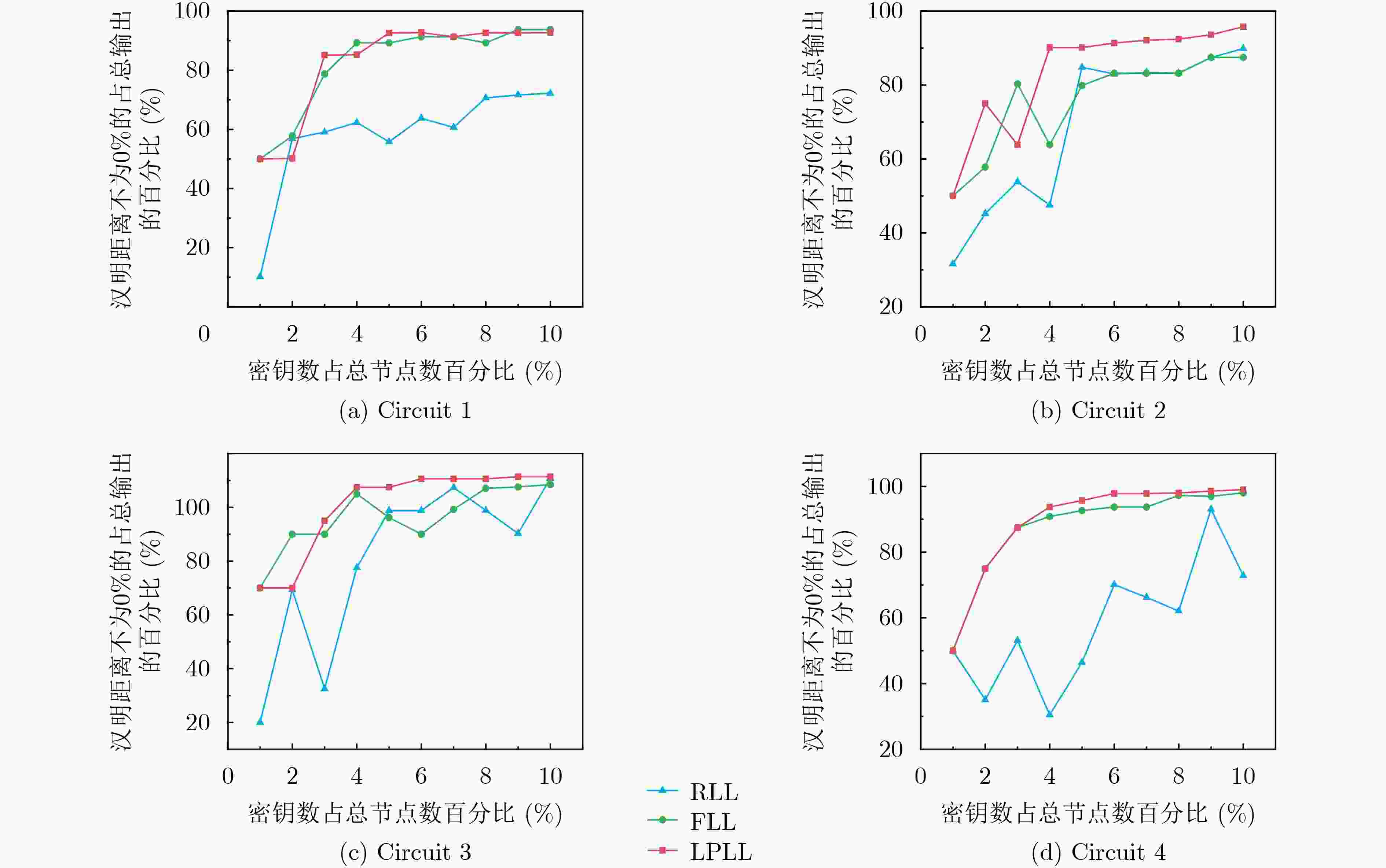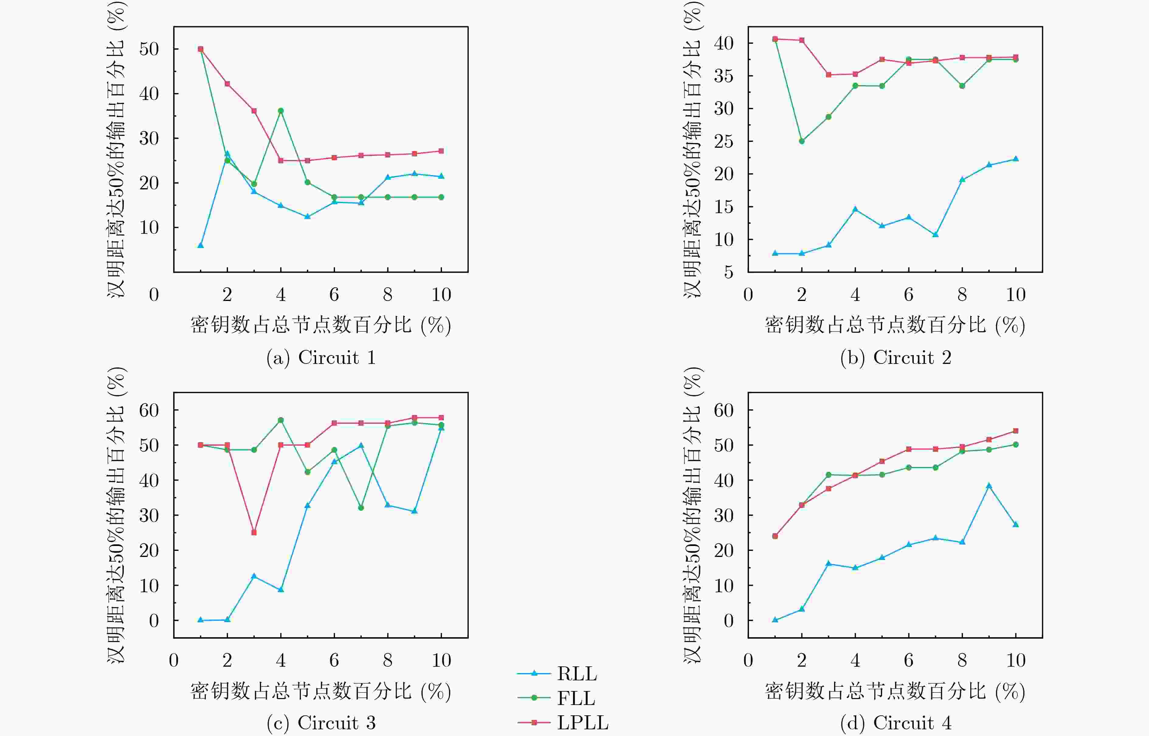 表 1 FLL和LPLL在C17电路上不同密钥位数下的输出混淆度