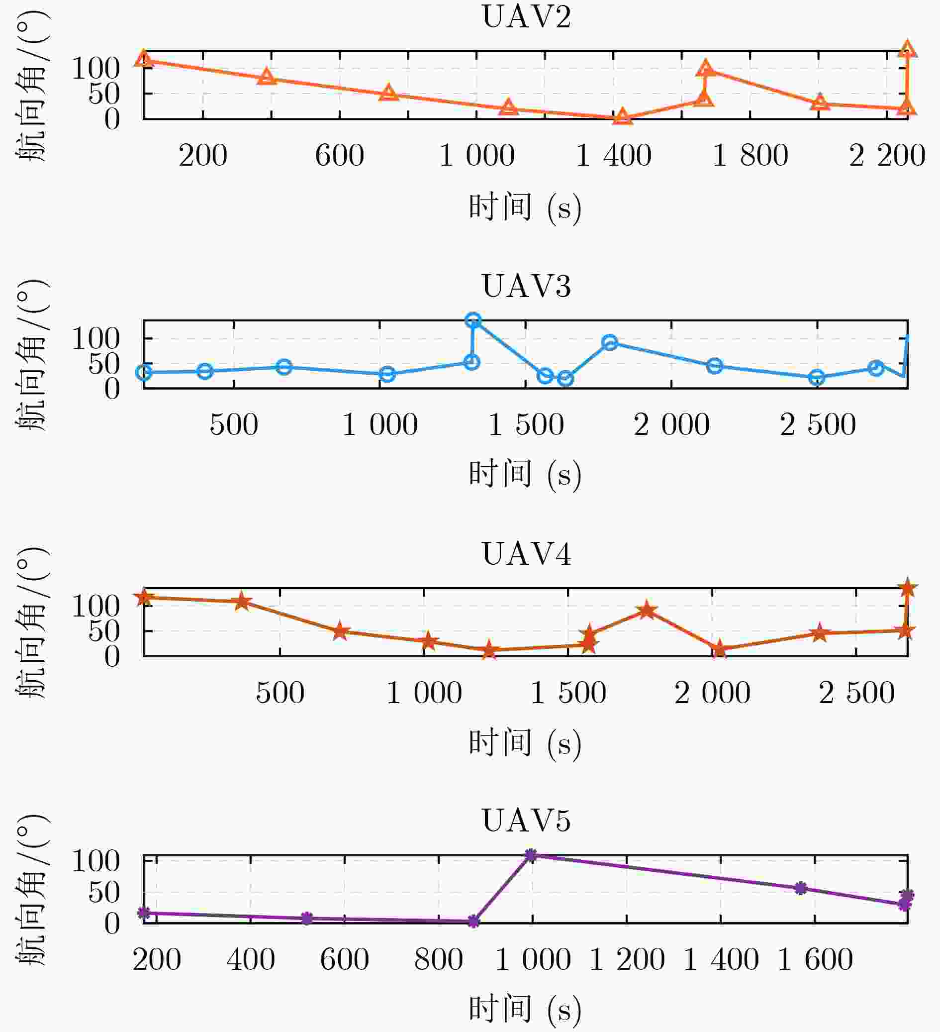 算法 航程/km 综合代价 运行时间/s 所提算法 1314.0 15.3403 100.7304 对比算法 1325.1 16.8436 82.9551 表 4 场景二中动态威胁位置设置