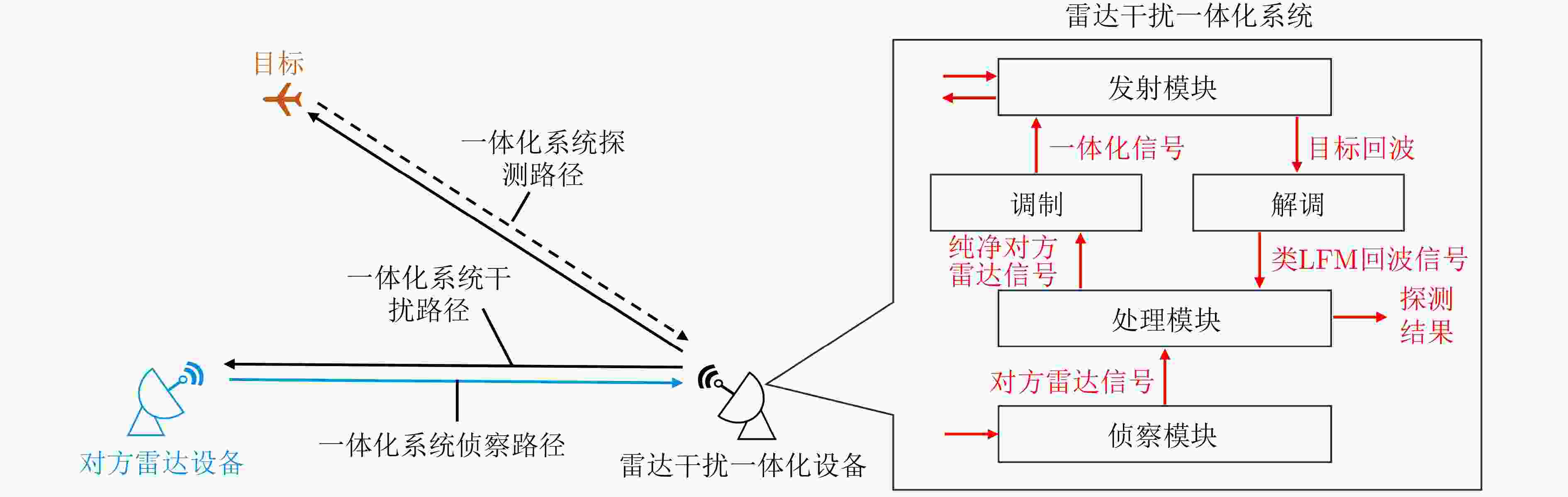 • 图  1  一体化系统信号处理与工作场景流程框图