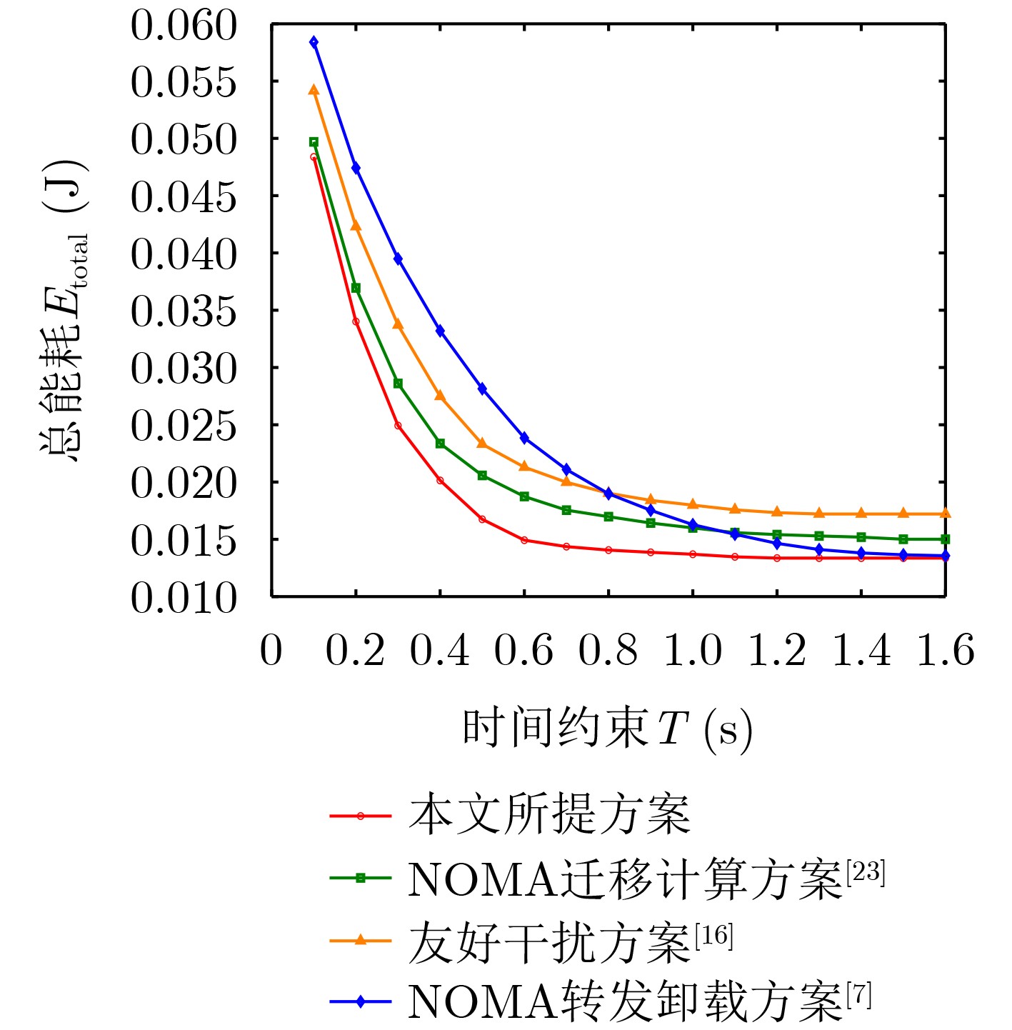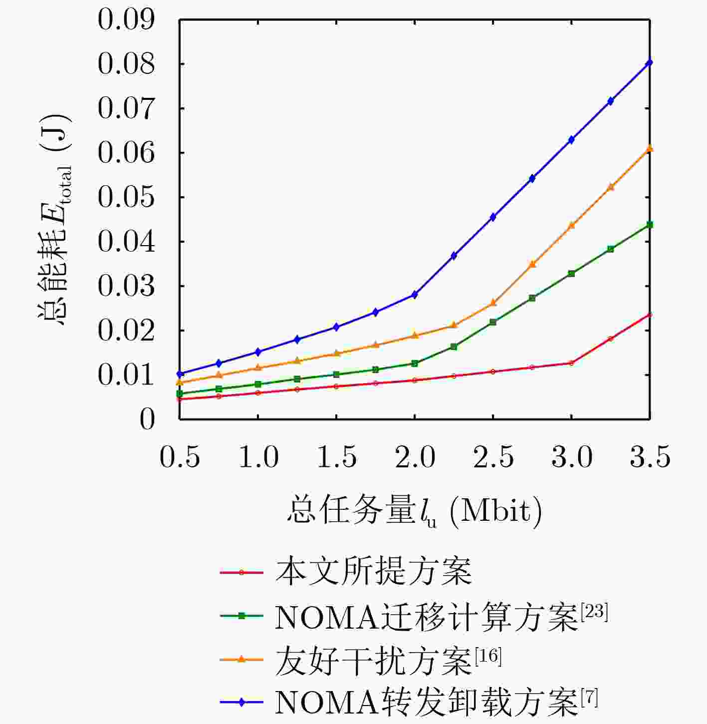 摘要: 为降低移动边缘计算(MEC)网络安全卸载过程的能耗,该文设计一种基于协作非正交多址(NOMA)的安全卸载模式,利用协作节点的通信和计算能力置换系统的安全性能。考虑设备计算和通信等资源分配的联合设计,该文提出保密中断概率(SOP)约束下的系统加权总能耗最小化问题。针对该非凸优化问题,将其分解为时隙与任务分配和功率分配两个子问题,并提出一种基于交替和逐次凸逼近(SCA)的迭代算法求解,依据信道状态和计算资源调整用户节点与协作节点之间的负载、功率和时隙分配。理论分析与仿真结果表明,所提算法收敛且具有低复杂度,相比于现有的NOMA转发卸载方案、友好干扰方案和NOMA迁移计算方案,可显著降低系统能耗,同时具备更高负载能力和更强的抗窃听能力,实现了节点在通信、计算和安全之间的权衡折衷。Abstract: