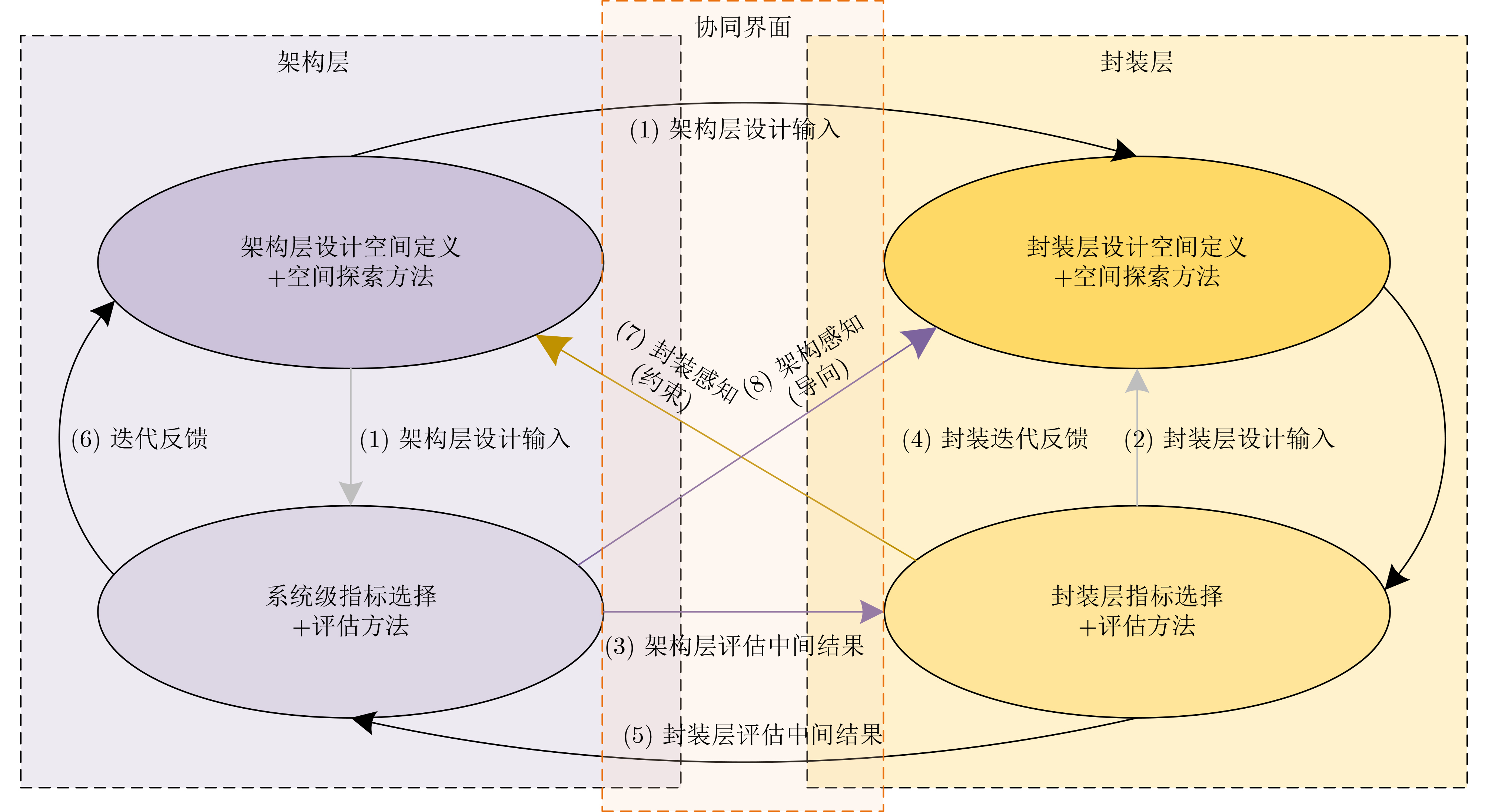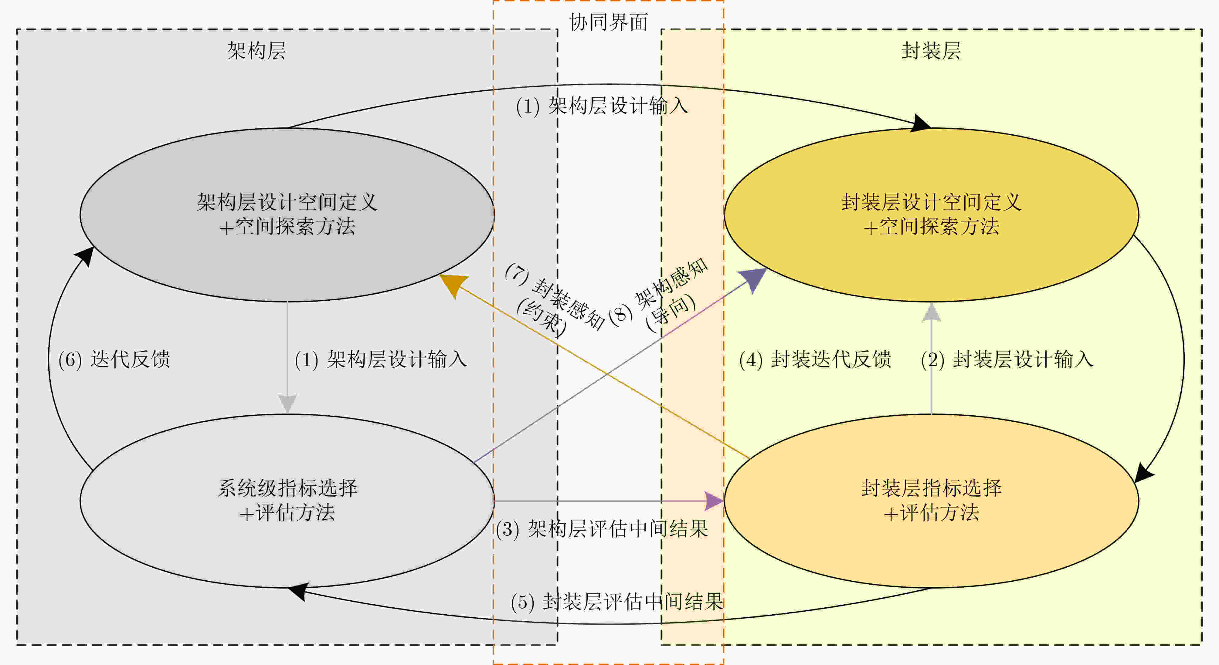 协同方法组成 分类 细分类型或使用范围 典型工作(及算法) 设计空间描述 参数和功能模型 - 文献[56,58,62,64,66,68,69] 详细设计描述文件 - 文献[51,57,63,67] 空间探索方法 有限设计点 架构层 文献[55,62,56,64,66,68] 封装层 文献[64,68] 迭代优化 架构层功能级分解组合 文献[58,69](启发式),文献[56](数学建模法) 架构层网表级分解组合 文献[51,57,67](启发式),文献[63](数学建模法) 封装层 文献[51,56,58,62,63,69](启发式),