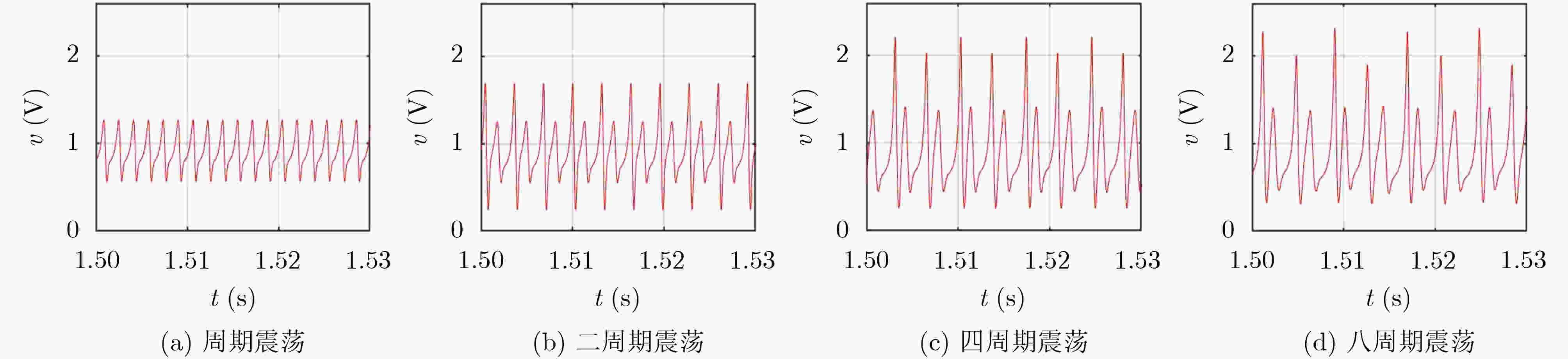表 1 忆阻器三阶电路振荡输出与电容值之间的映射关系。