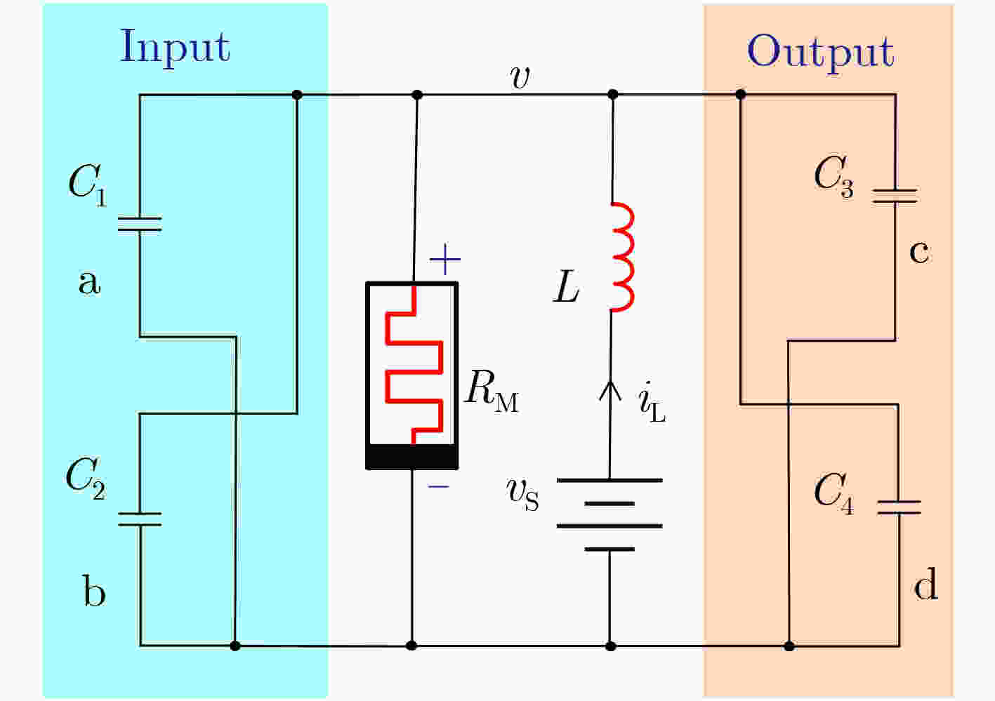 摘要: 生物神经系统在低功耗计算、动态存储方面具有显著的优势,这与神经元通过定向分泌递质来传递神经信号的工作机制密切相关。神经信号的产生涉及刺激信号的放大和运算,其工作机制可以利用忆阻器容控混沌振荡器实现。本文利用局部有源忆阻器随外接电容改变形成稳定的倍周期分叉的电压信号振荡,获得了电路中电容与忆阻器两端电压信号之间稳定的映射关系,电路中电容的改变使得忆阻器两端串行输出不同形态的电信号,其电压幅值稳定的周期改变。使得改变的电容与输出的电压信号之间形成稳定的多状态映射关系,从而构成存算单元。结合蔡氏结型忆阻器模型建立了三阶忆阻器电路,当忆阻器工作在局部有源区其三阶电路构成的振荡器能够同时完成信号放大、运算和存储。Abstract: