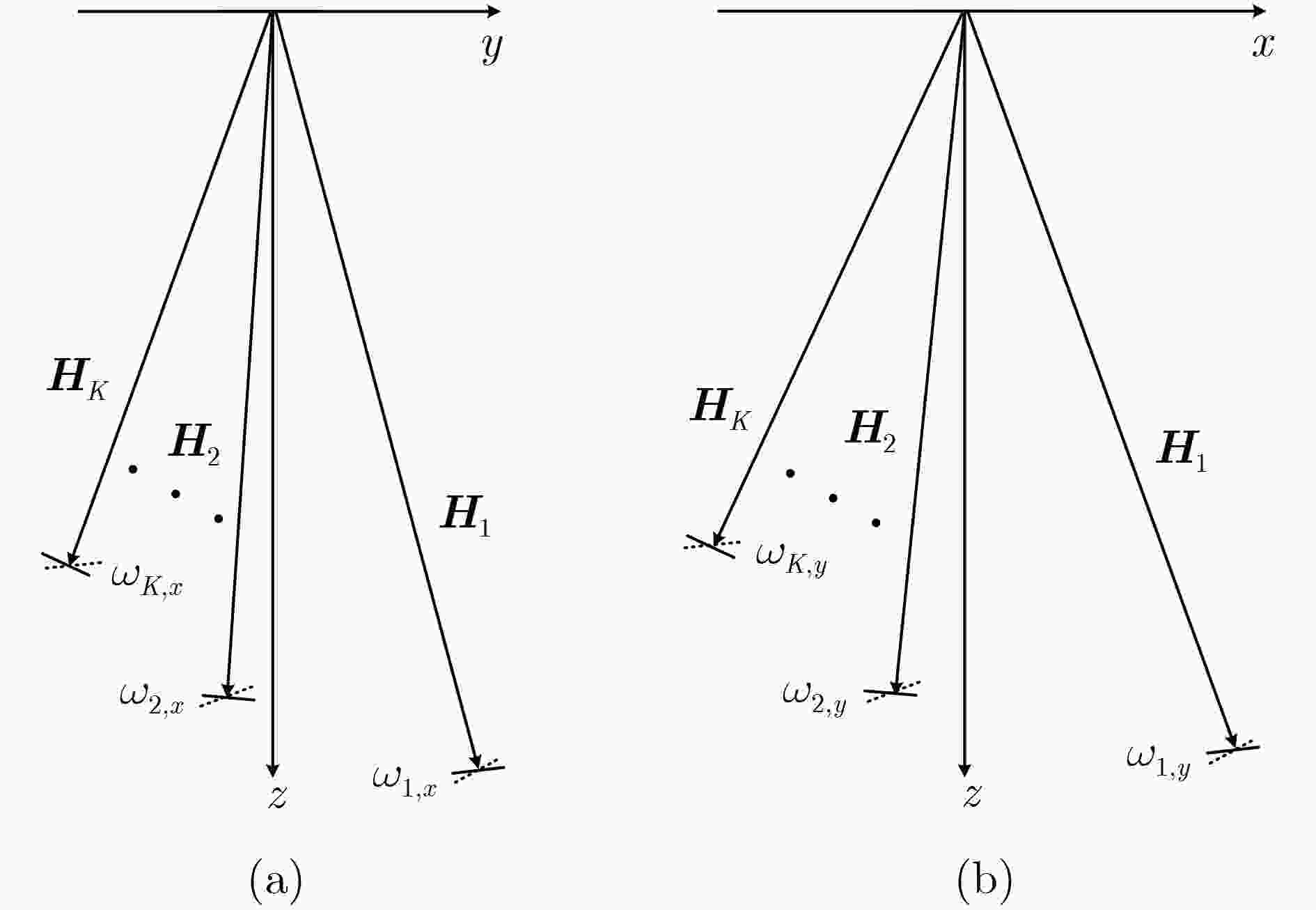 PS因子${n_k}$, ${m_k}$ 发射天线单元,接收天线单元 $ {D_k} $, $ {d_k} $ 发射UCA的半径,接收UCA的半径 $ {\omega _{k, x}} $, $ {\omega _{k, y}} $ 接收UCA绕x轴的旋转角度,接收UCA绕y轴的