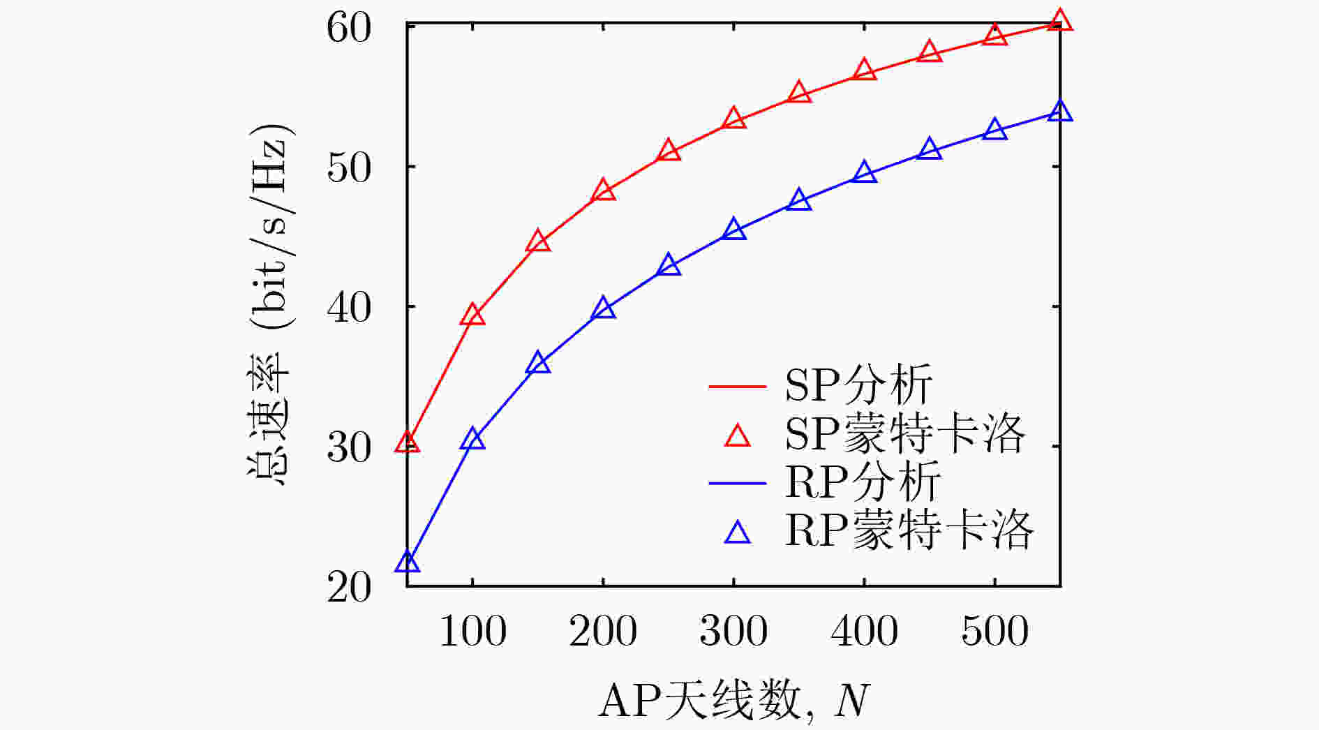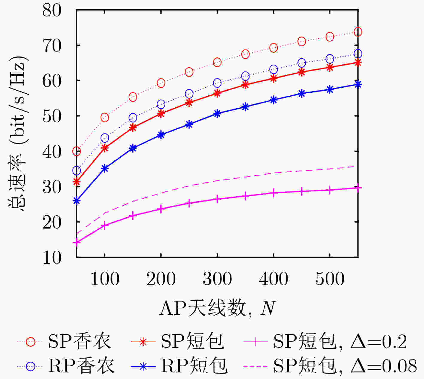 图  3  和速率与AP天线数的关系