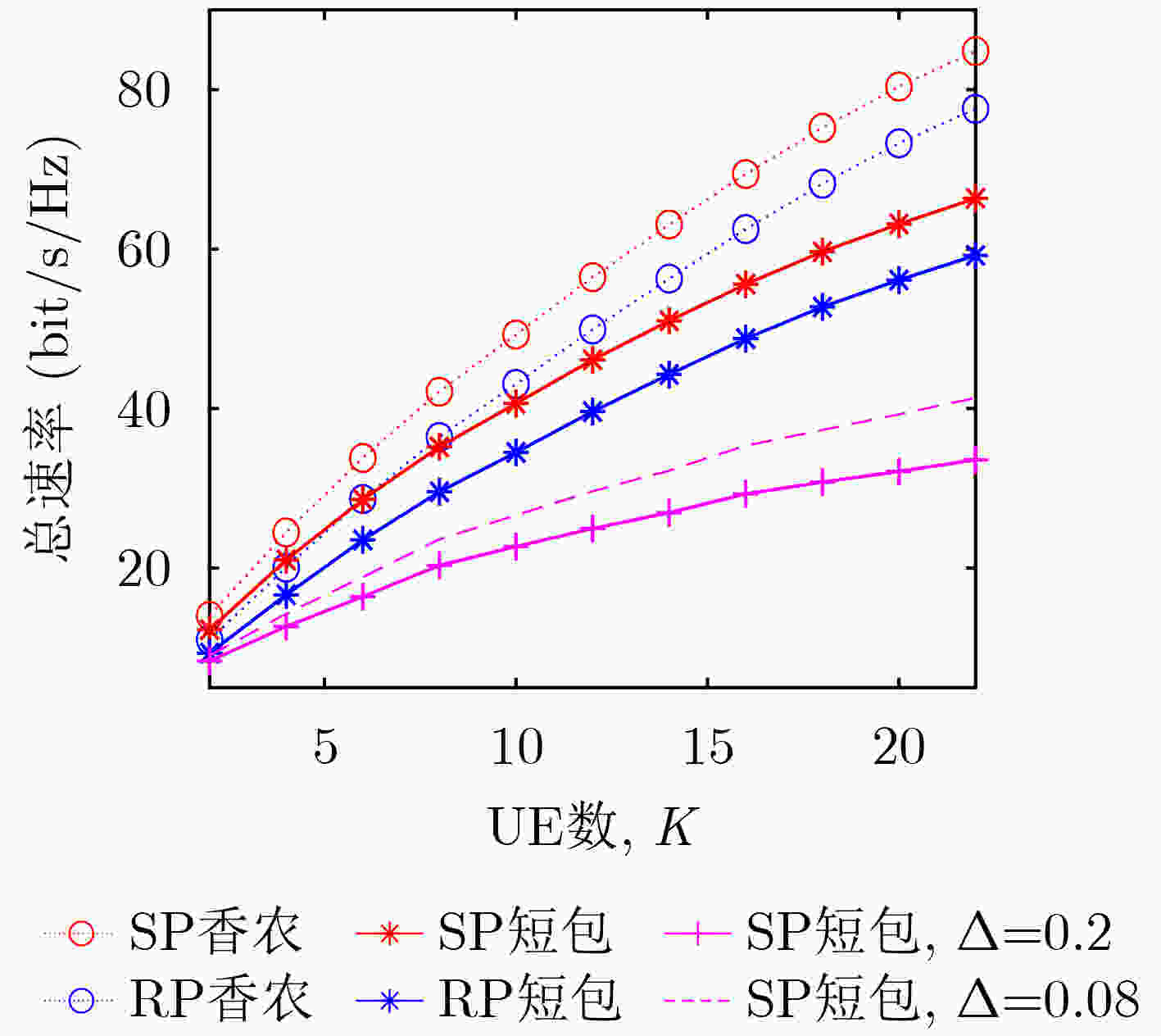 图  4  和速率与UE数的关系