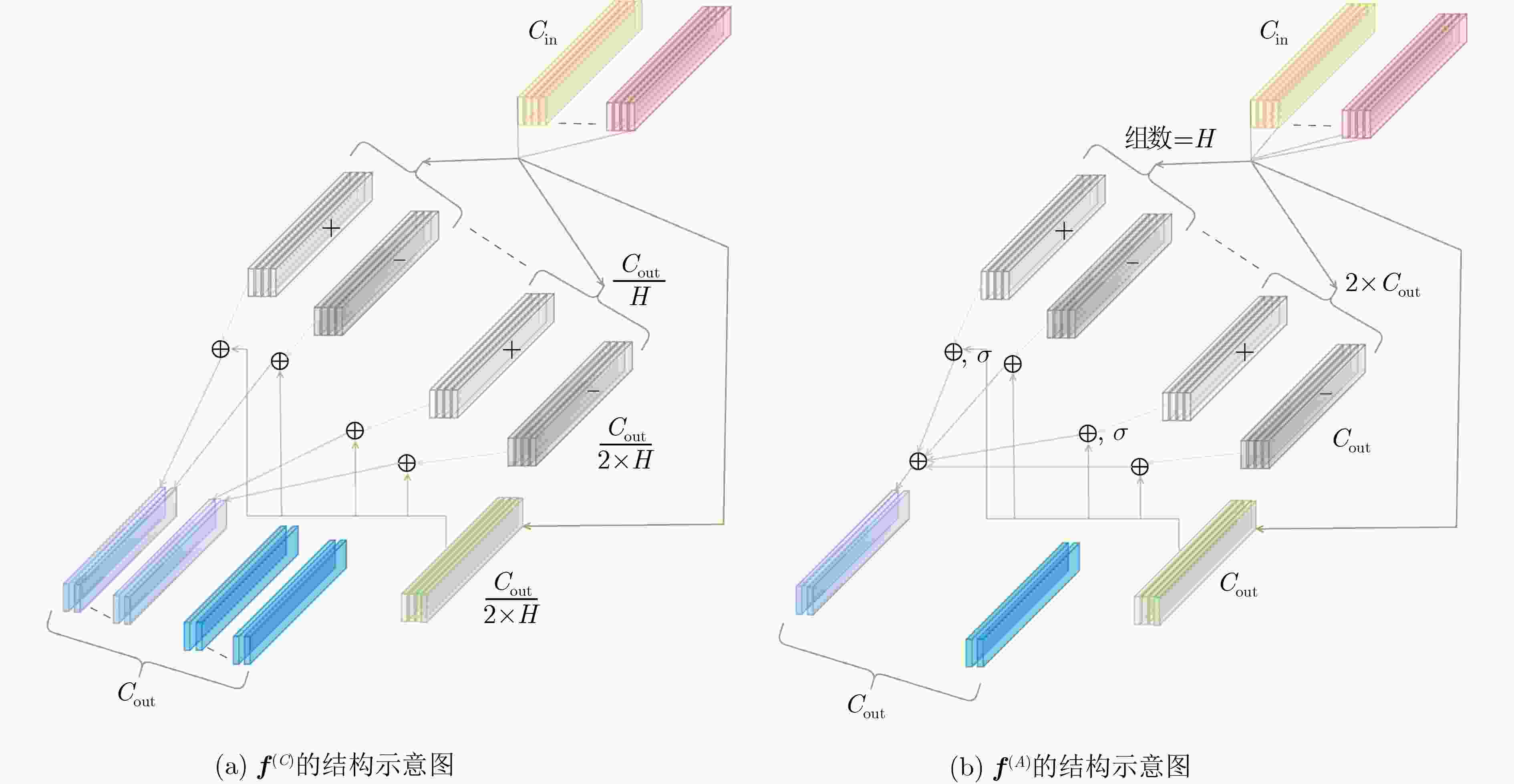 $ {{\boldsymbol{F}}^{(A)}} $(C=512, n=2) 70.65 1.3528G 4.32M 1.03/0.1082 1.31/0.1278 2.25/0.2098
