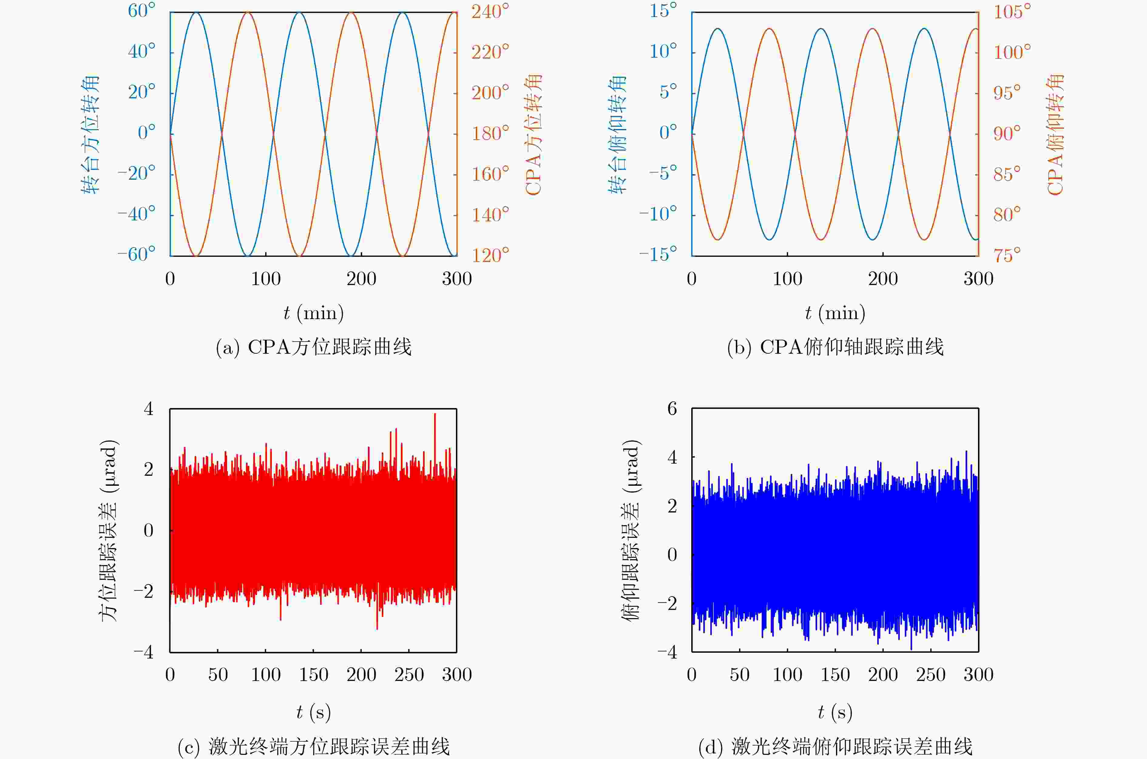 摘要: 星间激光通信因其具有超大信道容量、极低传输损耗和物理层高安全性,已成为下一代低轨巨型星座实现全球高速数据传输的核心技术。然而,低轨卫星的高速相对运动与复杂轨道摄动,对激光终端的快速建链与稳定跟踪构成了严峻挑战。为实现稳定可靠的通信链路,必须在全空间范围内建立粗指向机构(CPA)与探测器间微弧度量级的光学标定关系。该文提出一种面向低轨星座的全视场微弧度级光学标定方法,将复杂光机耦合误差统一建模为线性映射关系,利用CPA的随机微扰动运动构建其转角微偏移量与探测器光斑位移间的共轭关系,从而精确估计光学标定矩阵。实验结果表明,该方法可有效抑制光学像旋、跨象限运动、异常跟踪及镜像等系统误差,全空间跟踪精度优于5 μrad,显著提升了终端动态跟踪性能。Abstract: