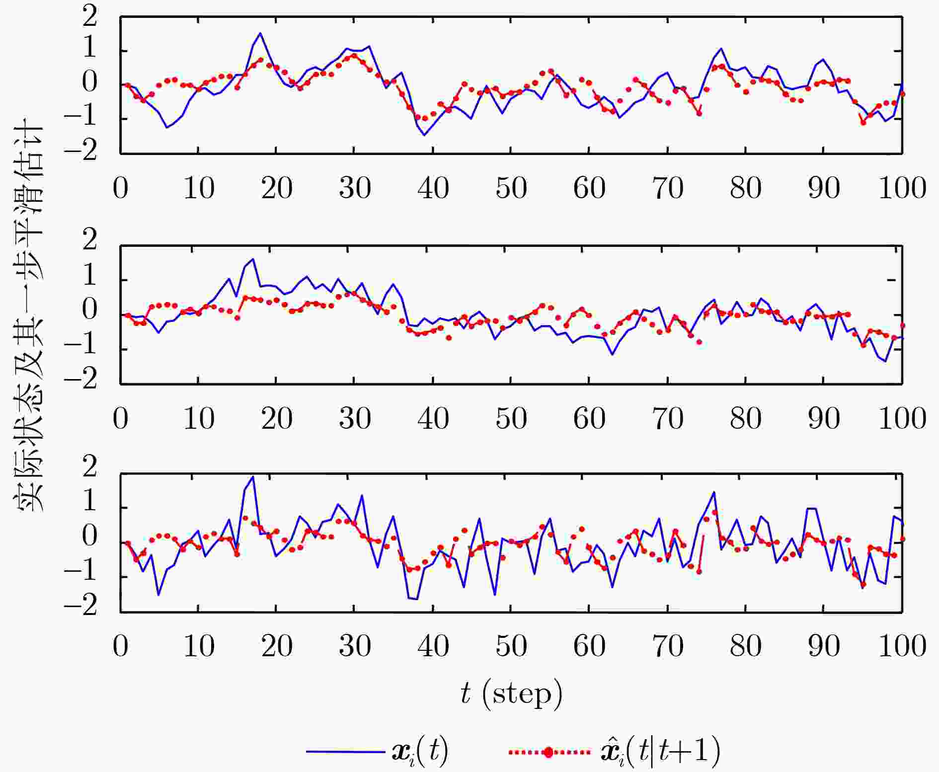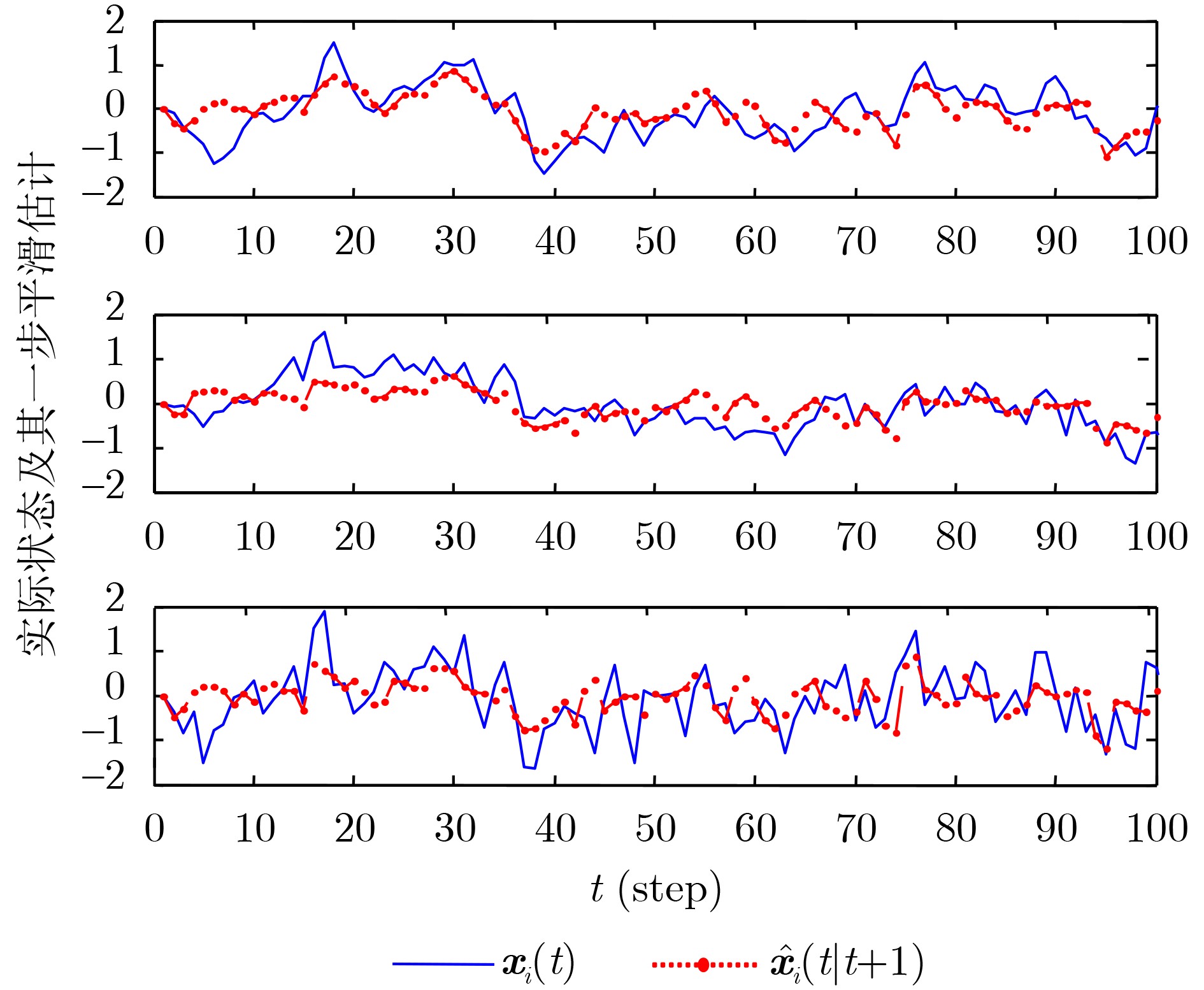 摘要: 该文研究了多步随机观测滞后和丢包系统的极大极小鲁棒Kalman滤波问题。系统噪声方差不确定但有已知保守上界,传感器到估值器的多步随机观测滞后和丢包通过一组概率已知的伯努利分布随机变量描述。利用哈达玛乘积改进模型转换方法,设计了极大极小鲁棒时变Kalman估值器。利用矩阵初等变换、盖尔圆盘定理和哈达玛乘积定理证明了广义李雅普诺夫方程解的半正定性,进而应用矩阵分解和李雅普诺夫方程方法证明了所设计估值器的鲁棒性,即对所有容许的不确定性,确保实际估计误差方差有最小上界。给出时变广义李雅普诺夫方程存在稳态唯一半正定解的条件,进而设计了鲁棒稳态估值器。证明了时变和稳态估值器的按实现收敛性。仿真实例验证了其有效性。Abstract: