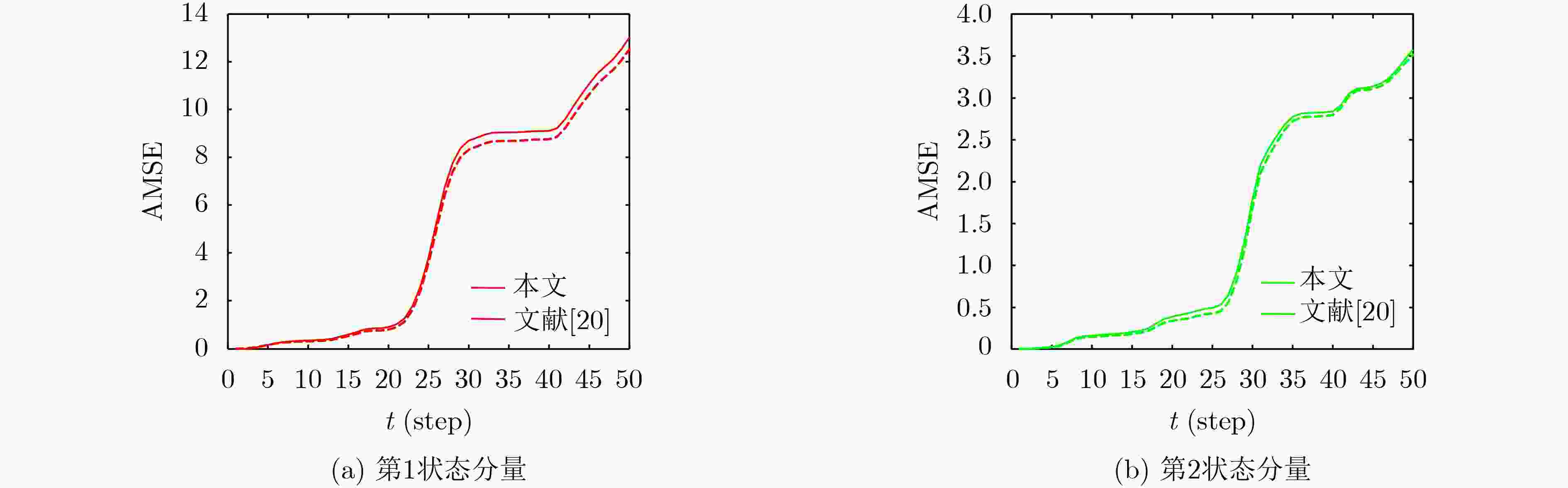 Objective Networked Control Systems (NCSs) provide advantages such as flexible installation, convenient maintenance, and reduced cost, but they also present challenges arising from random measurement delays and packet dropouts caused by communication network unreliability and limited bandwidth. Moreover, system noise variance may fluctuate significantly under strong electromagnetic interference. In NCSs, time delays are random and uncertain. When a set of Bernoulli-distributed random variables is used to describe multistep random measurement delays and packet dropouts, the fictitious noise method in existing studies introduces autocorrelation among different components, which complicates the computation of fictitious noise variances and makes it difficult to establish robustness. This study presents a solution for minimax robust Kalman filtering in systems characterized by uncertain noise variance, multistep random measurement delays, and packet dropouts. Methods The main challenges lie in model transformation and robustness verification. When a set of Bernoulli-distributed random variables is employed to represent multistep random measurement delays and packet dropouts, a series of strategies are applied to address the minimax robust Kalman filtering problem. First, a new model transformation method is proposed based on the flexibility of the Hadamard product in multidimensional data processing, after which a robust time-varying Kalman estimator is designed in a unified framework following the minimax robust filtering principle. Second, the robustness proof is established using matrix elementary transformation, strictly diagonally dominant matrices, the Gerŝgorin circle theorem, and the Hadamard product theorem within the framework of the generalized Lyapunov equation method. Additionally, by converting the Hadamard product into a matrix product through matrix factorization, a sufficient condition for the existence of a steady-state estimator is derived, and the robust steady-state Kalman estimator is subsequently designed. Results and Discussions The proposed minimax robust Kalman filter extends the robust Kalman filtering framework and provides new theoretical support for addressing the robust fusion filtering problem in complex NCSs. The curves (Fig. 5) present the actual accuracy ${\text{tr}}{{\mathbf{\bar P}}^l}(N)$, $l = a,b,c,d$ as a function of $ 0.1 \le {\alpha _0},{\alpha _1},{\alpha _2} \le 1 $. It is observed that situation (a) achieves the highest robust accuracy, followed by situations (b) and (c), whereas situation (d) exhibits poorer accuracy. This difference arises because the estimators in situation (a) receive measurements with one-step random delay, whereas situation (d) experiences a higher packet loss rate. The curves (Fig. 5) confirm the validity and effectiveness of the proposed method. Another simulation is conducted for a mass–spring–damper system. The comparison between the proposed approach and the optimal robust filtering method (Table 2, Fig. 7) indicates that although the proposed method ensures that the actual prediction error variance attains the minimum upper bound, its actual accuracy is slightly lower than the optimal prediction accuracy. Conclusions The minimax robust Kalman filtering problem is investigated for systems characterized by uncertain noise variance, multistep random measurement delays, and packet dropouts. The system noise variance is uncertain but bounded by known conservative upper limits, and a set of Bernoulli-distributed random variables with known probabilities is used to represent the multistep random measurement delays and packet dropouts between the sensor and the estimator. The Hadamard product is used to enhance the model transformation method, followed by the design of a minimax robust time-varying Kalman estimator. Robustness is demonstrated through matrix elementary transformation, the Gerŝgorin circle theorem, the Hadamard product theorem, matrix factorization, and the Lyapunov equation method. A sufficient condition is established for the time-varying generalized Lyapunov equation to possess a unique steady-state positive semidefinite solution, based on which a robust steady-state estimator is constructed. The convergence between the time-varying and steady-state estimators is also proven. Two simulation examples verify the effectiveness of the proposed approach. The presented methods overcome the limitations of existing techniques and provide theoretical support for solving the robust fusion filtering problem in complex NCSs. -