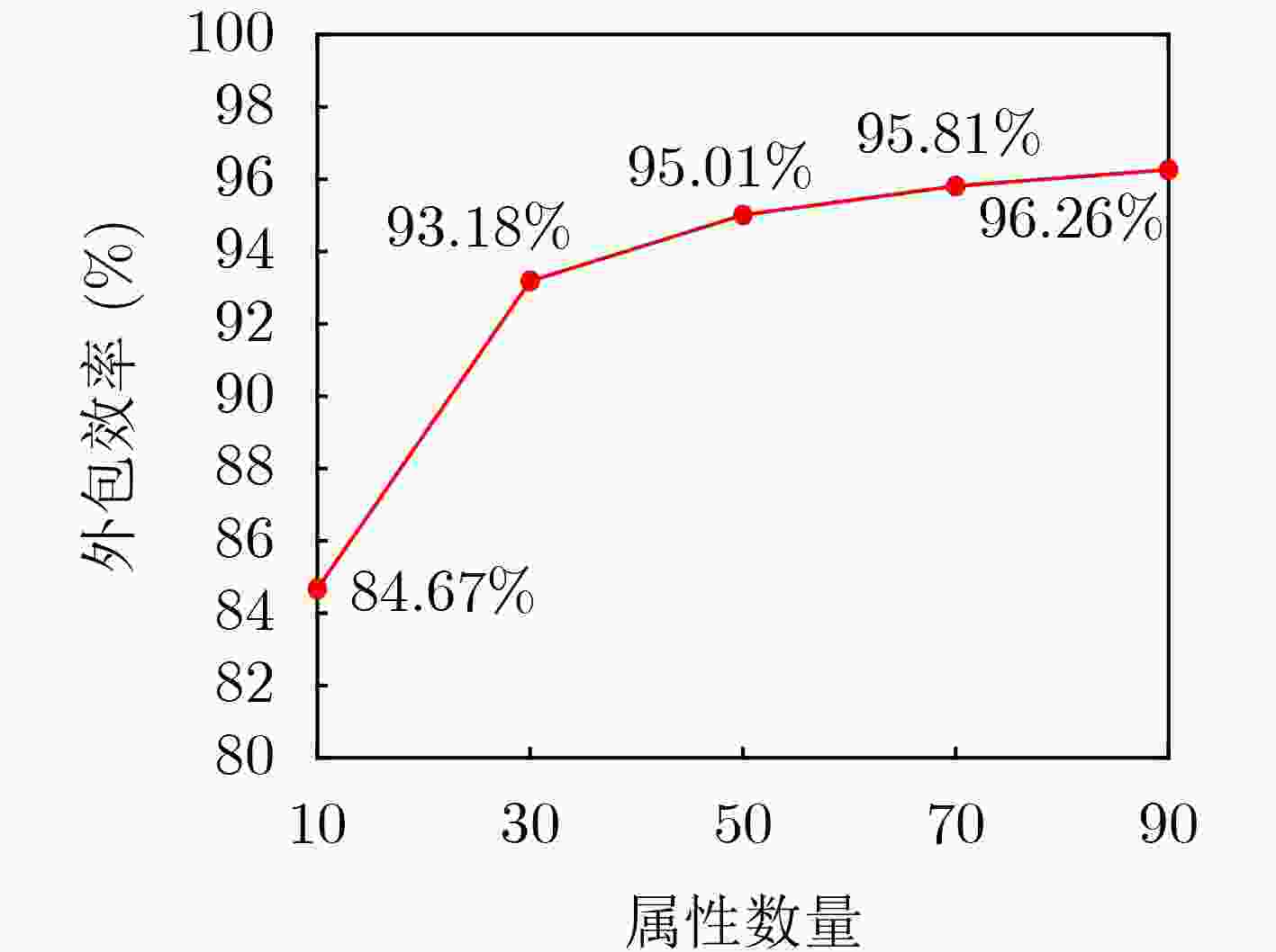 属性数量 $ 10 $ $ 30 $ $ 50 $ 70 90 $ {T}_{\mathrm{t}}(\text{ms}) $ 108.71 306.66 504.64 702.63 900.60 $ {T}_{\mathrm{r}}(\text{ms}) $ 16.66 20.92 25.18 29.44 33.70 $ \text{OE}(\% ) $ 84.67 93.18 95.01 95.81 96.26 表 5 端到端搜索延迟构成(ms)