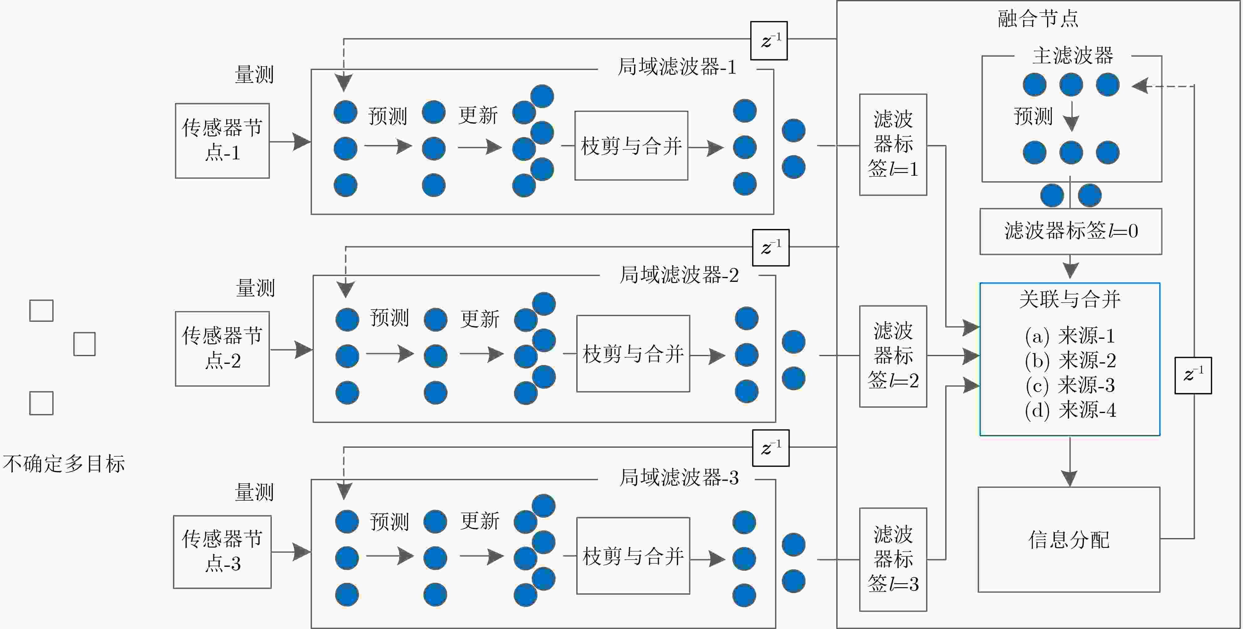 表 1 GM-PHD滤波器联邦均值融合算法的总结