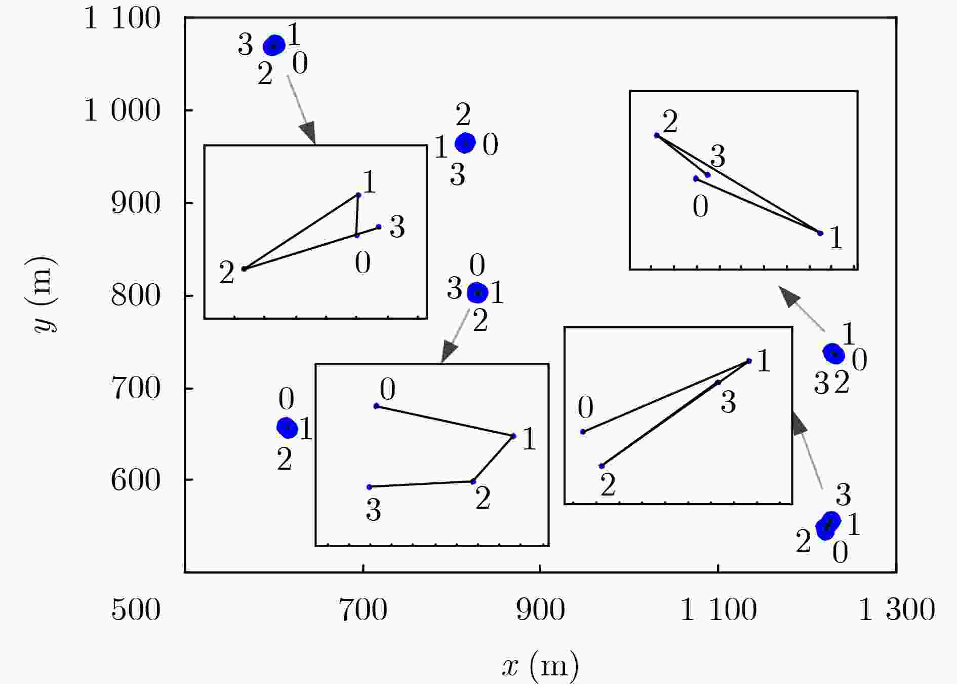 步骤 操作 1 根据式(7,8)为各滤波器分配GC、过程噪声协方差和合并门限,利用式(18,19)修正各滤波器GC的权重 2 局域滤波器执行完整的GM-PHD滤波器,主滤波器仅执行预测 3 各滤波器节点估计目标数$ \hat N_k^{(s)} $,将$ \hat N_k^{(s)} $个T-GC送至融合节点,利用式(17,19)修正T-GC的权重 4 融合节点根据式(9,10)将T-GC关联为Gk组,记为式(11) 5 根据式(12)合并GC权重,根据滤波器索引标签判断GC的来源,不同来源使用不同的方法执行合并,分别为