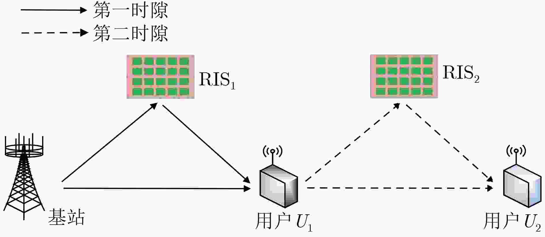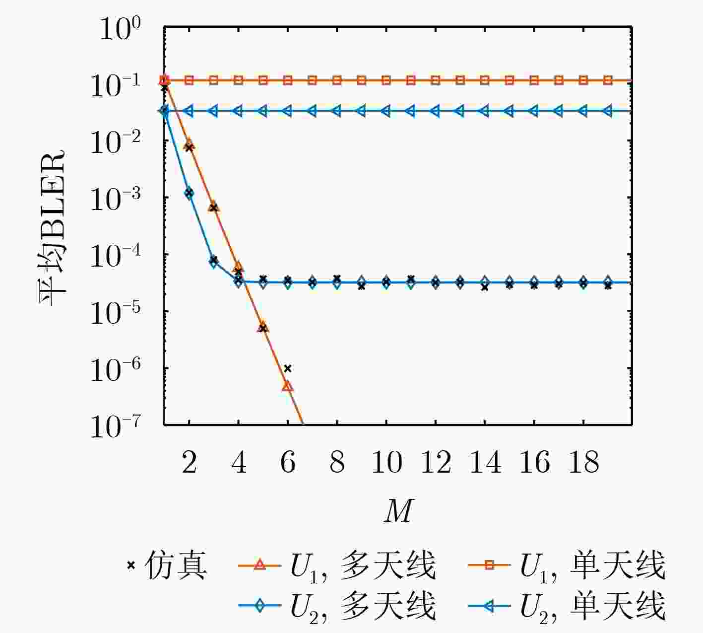 Objective Numerous existing studies on short-packet communication systems rely on the assumption of ideal transceiver devices. However, this assumption is unrealistic because radio-frequency transceiver hardware inevitably suffers from impairments such as phase noise and amplifier nonlinearity. Such impairments are particularly pronounced in short-packet communication systems, where low-cost hardware components are widely employed. However, the performance of reconfigurable intelligent surface (RIS)-assisted multi-antenna cooperative non-orthogonal multiple access (NOMA) short-packet communication systems with hardware impairments has not been investigated. Furthermore, the impact of the number of base station (BS) antennas and RIS reflecting elements on the reliable performance remains unexplored. Therefore, this paper investigates the reliable performance of double RIS-assisted multi-antenna cooperative NOMA short-packet communication systems, where one RIS facilitates communication between a multi-antenna BS and a near user, and the other RIS enhances communication between the near user and a far user. Methods Based on finite blocklength information theory, closed-form expressions for the average block error rate (BLER) of the near and far users are derived under the optimal antenna selection strategy. These expressions provide an efficient and convenient approach for evaluating the reliability of the considered system. Next, the effective throughput is formulated, and the optimal blocklength that maximizes it under reliability and latency constraints is derived. Results and Discussions The theoretical average BLER results show excellent agreement with Monte Carlo simulation results, confirming the validity of the derivations. The average BLER for the near and far users decreases as the transmit signal-to-noise ratio (SNR) increases. Moreover, for a given transmit SNR, increasing the blocklength significantly reduces the average BLER for the near and far users ( Fig. 2 ). The reason for this improvement is that longer blocklengths decrease the transmission rate, thereby enhancing system reliability. The average BLER for the near user initially decreases before reaching a minimum and then increases as the power allocation coefficient increases (Fig. 3 ). This trend is due to the fact that increasing the power allocation coefficient reduces the BLER for decoding the near user's signal but increases the complexity of the successive interference cancellation (SIC) process. In contrast, the average BLER for the far user increases as the power allocation coefficient increases. The double RIS-assisted transmission scheme demonstrates superior performance compared to the single RIS-assisted and non-RIS-assisted transmission schemes (Fig. 4 ). Specifically, as the number of RIS reflecting elements increases, the performance advantage of the proposed scheme over these benchmark schemes becomes increasingly significant. The average BLER for the far user saturates as the number of BS antennas increases (Fig. 5 ). This is due to the fact that the relaying link becomes the dominant performance bottleneck when the number of BS antennas exceeds a certain value. As the blocklength increases, the effective throughput first reaches a maximum and then gradually decreases (Fig. 6 ). This is because when the blocklength is too small, a higher BLER results in poor effective throughput. When the blocklength is too large, a lower transmission rate also leads to poor effective throughput. As the quality of hardware improves, the optimal blocklength decreases. This can be justified by the fact that lower hardware impairments reduce decoding errors, meaning that shorter blocklengths can be used to reduce transmission latency while still satisfying reliability constraints.Conclusions This paper investigates the performance of the double RIS-assisted multi-antenna cooperative NOMA short-packet communication system under hardware impairments. Closed-form expressions for the average BLER of the near and far users are derived under the optimal antenna selection strategy. Furthermore, the effective throughput is analyzed, and the optimal blocklength that maximizes the effective throughput under reliability and latency constraints is determined. Simulation results demonstrate that the double RIS-assisted transmission scheme achieves superior performance compared to the single RIS-assisted and non-RIS-assisted transmission schemes. In addition, increasing the number of BS antennas does not always improve the average BLER for the far user due to the relaying link constraint. Power allocation is critical for ensuring user reliability. The near user should carefully balance self-signal demodulation and SIC under a total power constraint. Superior hardware quality enhances short-packet communication efficiency by lowering the optimal blocklength. Future work will focus on developing RIS configuration schemes that simultaneously maximize energy efficiency (EE) and ensure user fairness in NOMA to address the needs of energy-constrained IoT devices. -